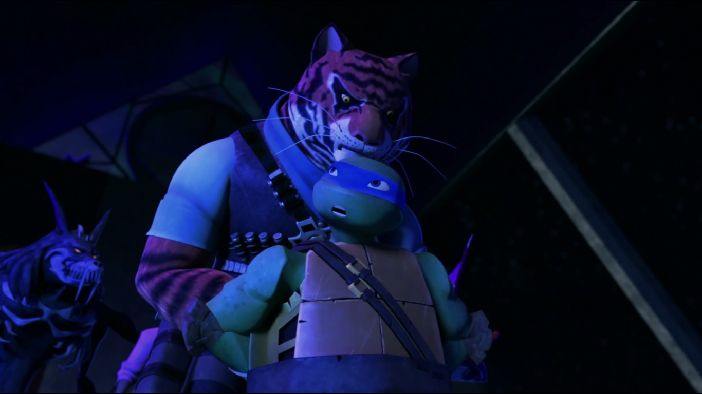 Karai doutait qu’un nouvel élément leur soit d’une grande aide. Le tigre, inspectant son nouveau clan, ne croyait pas dans l’efficacité de ses armées. Les terrible ninjas Foot qu’on lui avait promis faisaient pâle figure. Il s’attendait à mieux. Karai, vexée par les paroles du nouveau venu, l’attaquait avant de se raviser. Le tigre avait dégainé un de ses pistolets lasers en quelques fractions de secondes. Fishface était plus conciliant, lui proposant un verre de lait comme cadeau de bienvenue. Mais Karai ne semblait pas vouloir en rester là, et continuait de provoquer le mutant, cette fois à propos de sa queue absente. Shredder, fatigué de ces gamineries, la faisait taire. Tiger Claw était son nouveau second, remerciant à ce poste Karai. Pour couronner le tout, il demande au félin de partir capturer Splinter et les tortues, plaçant ainsi Karai sous ses ordres. La jeune femme se sentait humiliée.