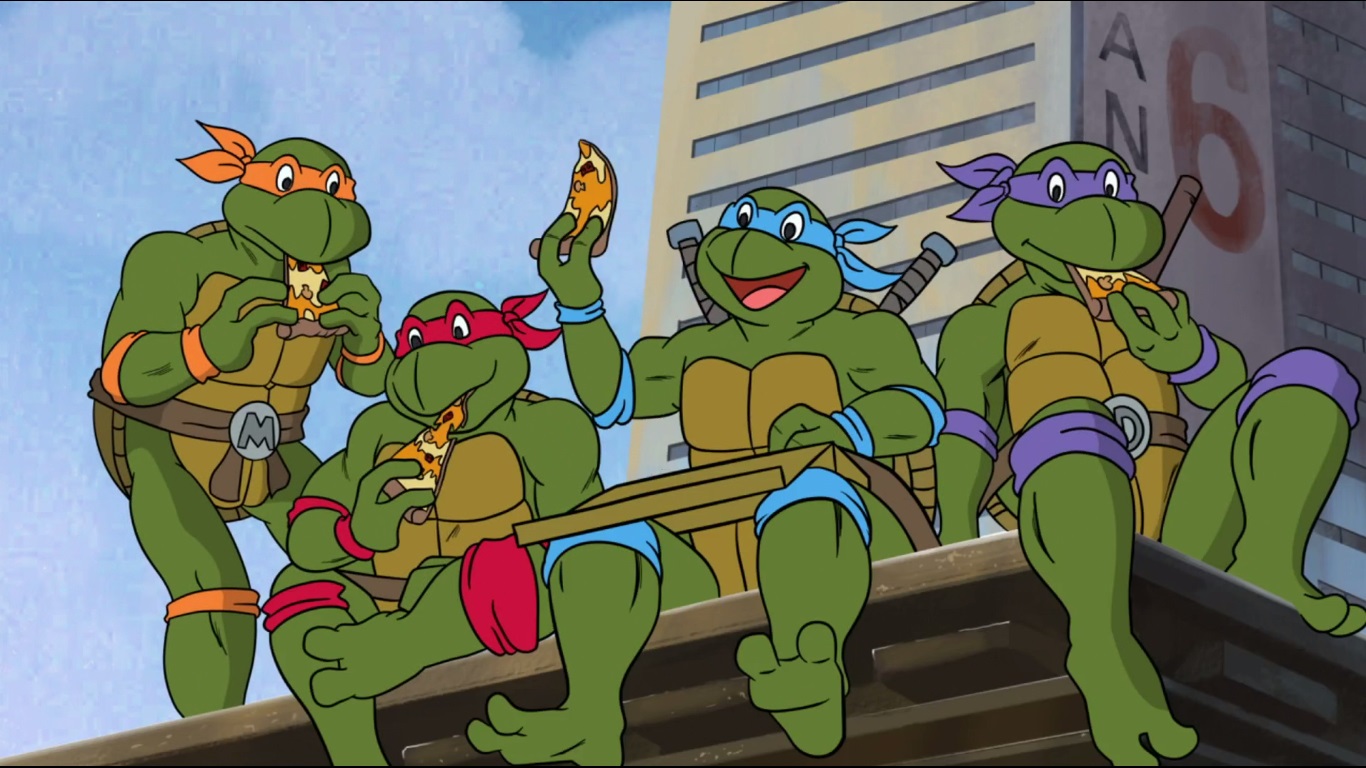 - Les tortues de 1987 sont physiquement assez décevantes dans cet épisode, par rapport à ce qu’elles étaient dans leur propre série.