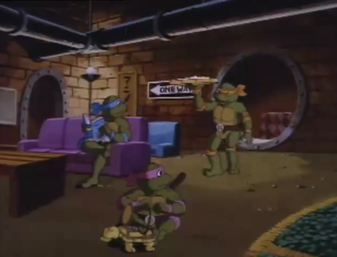 Il retrouvait les tortues en train de regarder la télévision ou déguster une bonne pizza. Leonardo essayait d’expliquer à leur maître qu’ils avaient besoin de vacances, mais le rongeur n’était pas de cet avis et leur collait une magnifique correction. Shredder et Krang, bien que vaincus (Le retour du Technodrome, S2 E13), risquaient de revenir à tout moment. Et quand bien même ils restaient prisonniers au centre de la Terre, d’autres criminels sévissaient toujours dans les rues…
