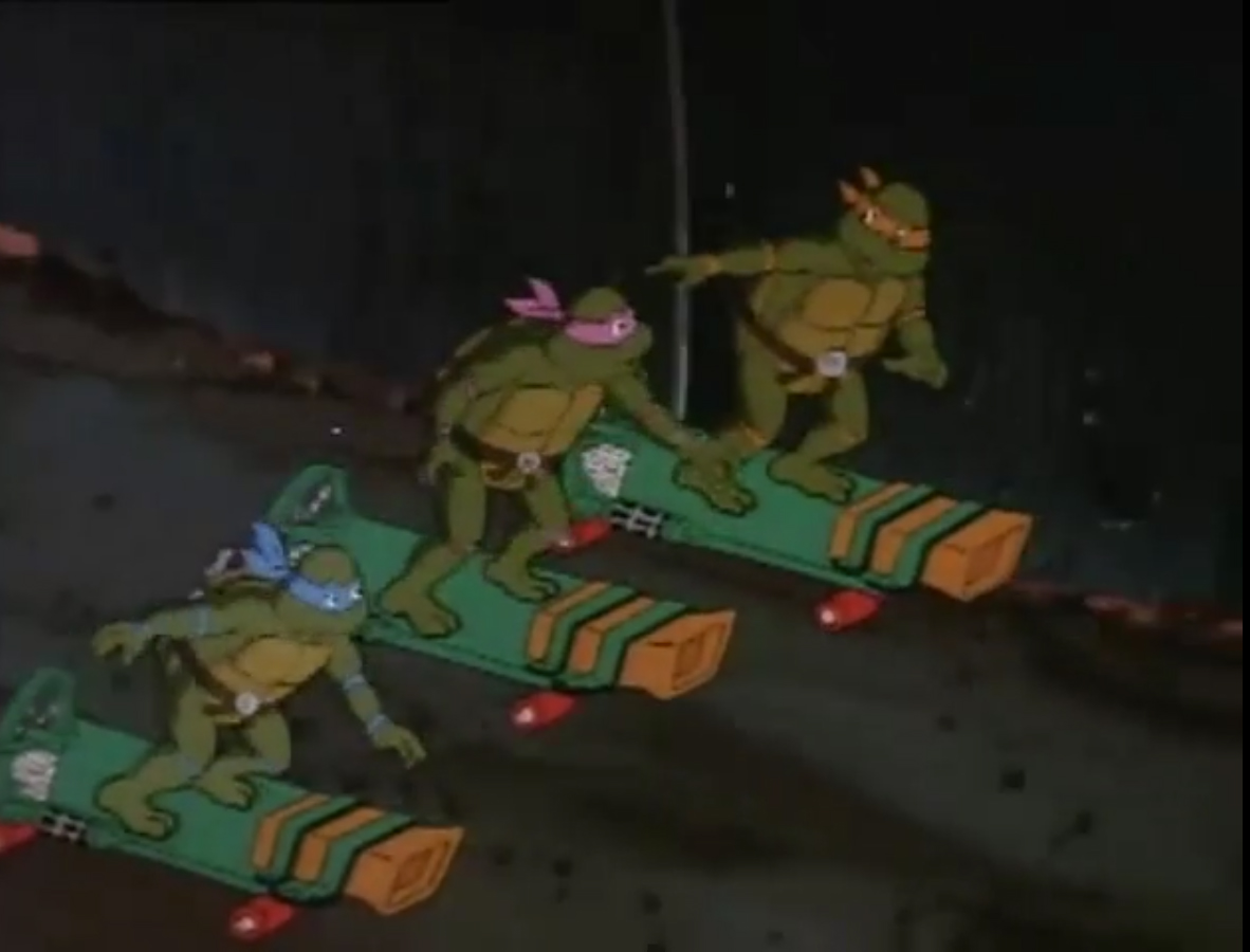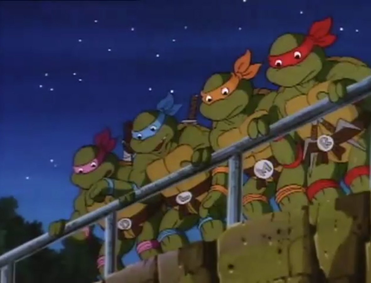Le film touchait à sa fin, et les tortues sortaient de la salle ravies. Leonardo voulait appeler leur maître, mais Michaelangelo l’arrêtait une fois encore. Il proposait à ses frères de déguster une bonne pizza avant de rentrer.