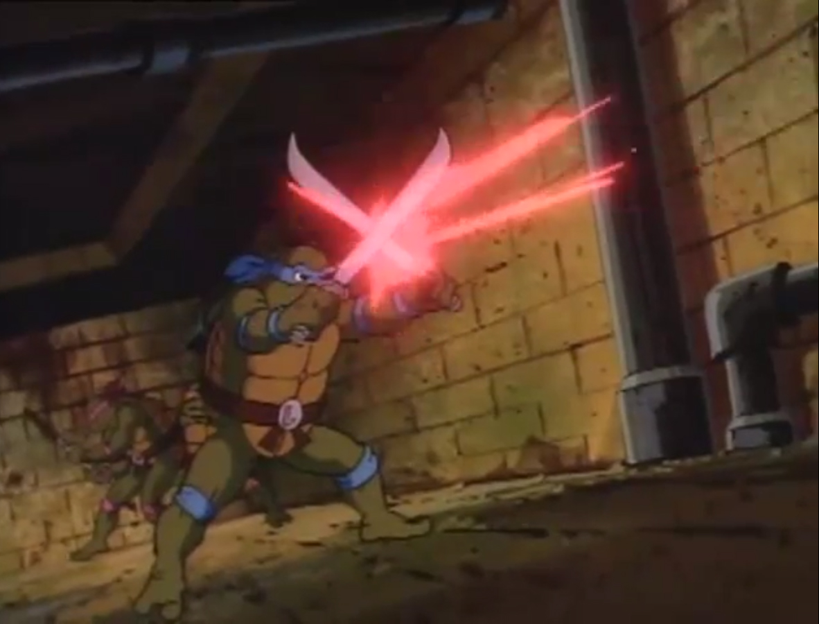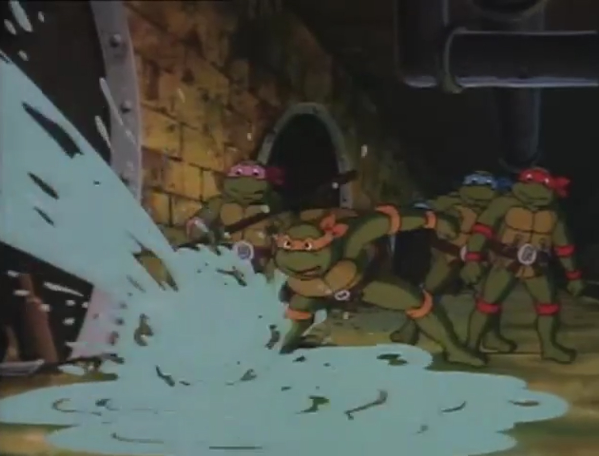 Shredder était le premier à mettre la main sur le fusil laser. Voyant les tortues arriver, il s’enfuyait par les égouts. C’était sans compter sur la connaissance des souterrains par ses ennemis, qui les bloquaient dans une impasse. Neutraliser les deux mutants et les soldats robots était un jeu d’enfant. Shredder tirait sur Leonardo, qui détournait le rayon laser à l’aide de ses sabres. Une citerne d’eau était touchée, emportant les ennemis dans un torrent. Michaelangelo s’emparait du fusil laser à temps. Les ninjas n’avaient plus qu’à l’utiliser sur leur maître au plus vite !