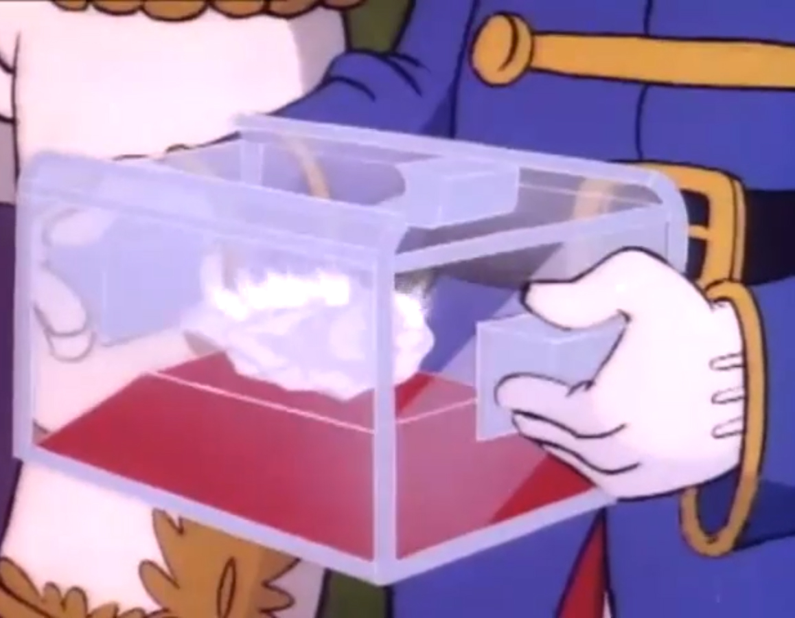 Les ninjas craignaient le pire. Shredder et Krang avaient le lithium 90. Mais Donatello les rassurait. Il s’agissait d’un minerai terriblement instable. Soumis à une pression forte, comme au centre de la Terre, il risquait d’exploser. Au même moment, l’empereur entrait dans le musée pour remercier les tortues et leur remettre le prix du meilleur déguisement. Ou plutôt du plus ridicule !