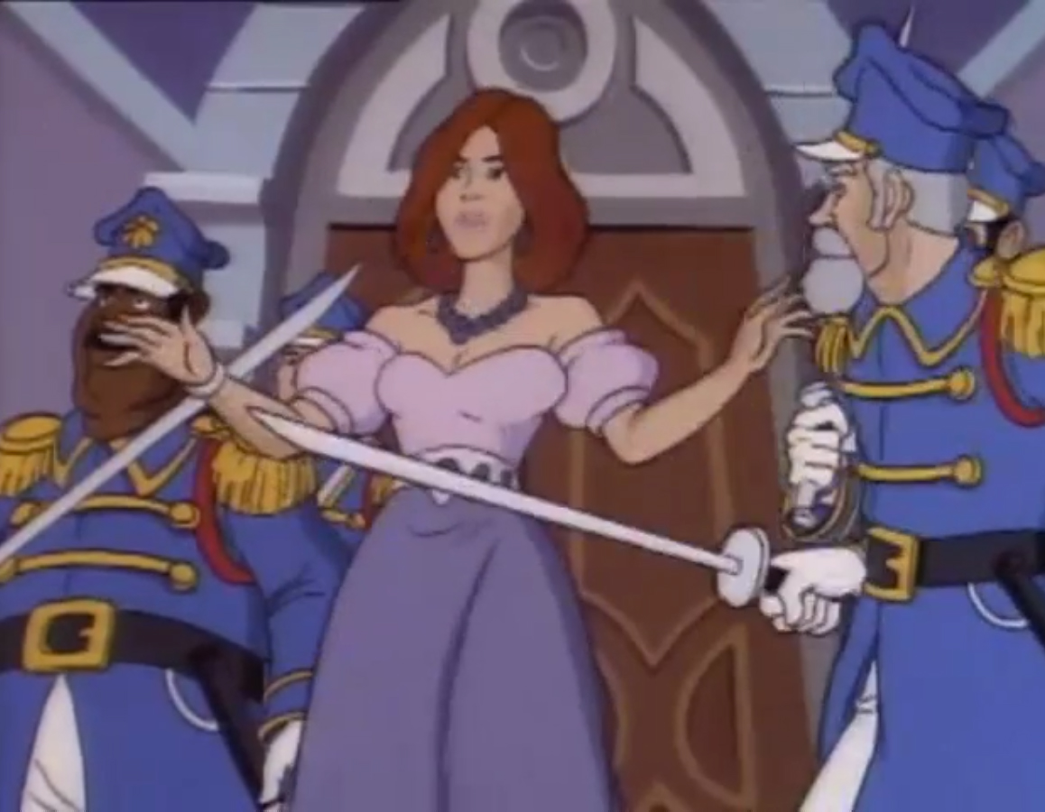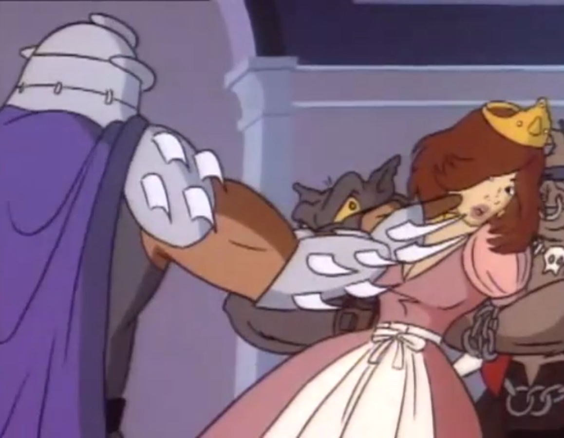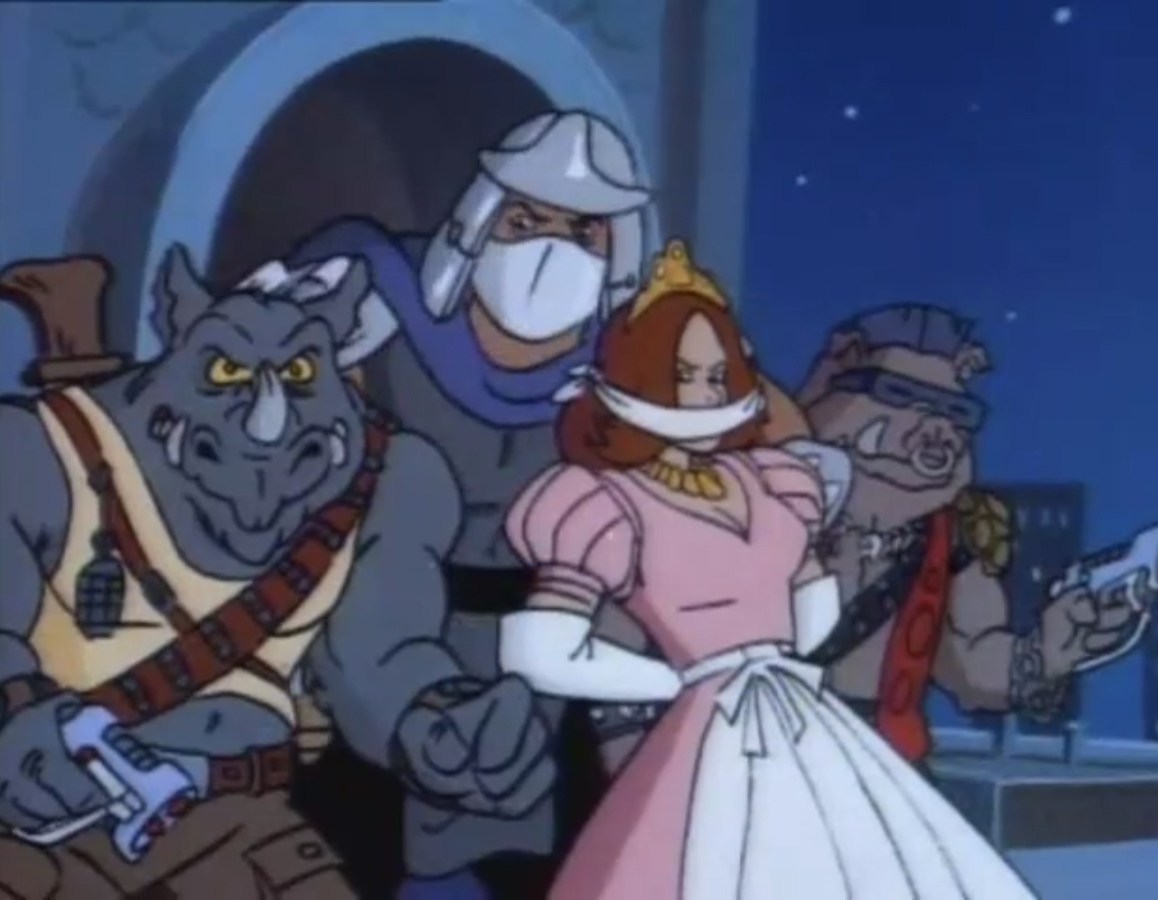 L’annonce dans les hauts parleurs guidait les tortues en direction des toits. Mais elles se faisaient appréhender par les gardes, qui les attendaient au détour d’un couloir pour leur tendre un piège. À la surprise générale, les gardes étaient arrêtés par la princesse en personne. Les tortues la confondaient avec April, jusqu’à se rendre compte qu’il s’agissait de la véritable princesse. Cette dernière avait entendu beaucoup de choses à propos des ninjas mutants et voulait les aider. Lui expliquant la situation, elle allait les guider jusqu’au toit.