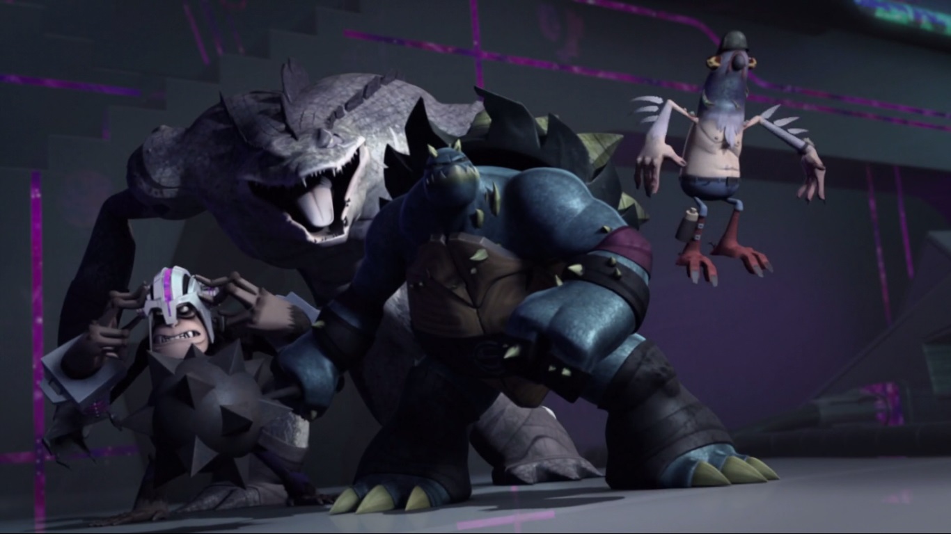 Cet épisode introduit les Mighty Mutanimals dans l’univers du dessin animé de 2012. Cette équipe de choc avait été créée pour TMNT Adventures, publié dans les années 90′ chez Archie Comics.
