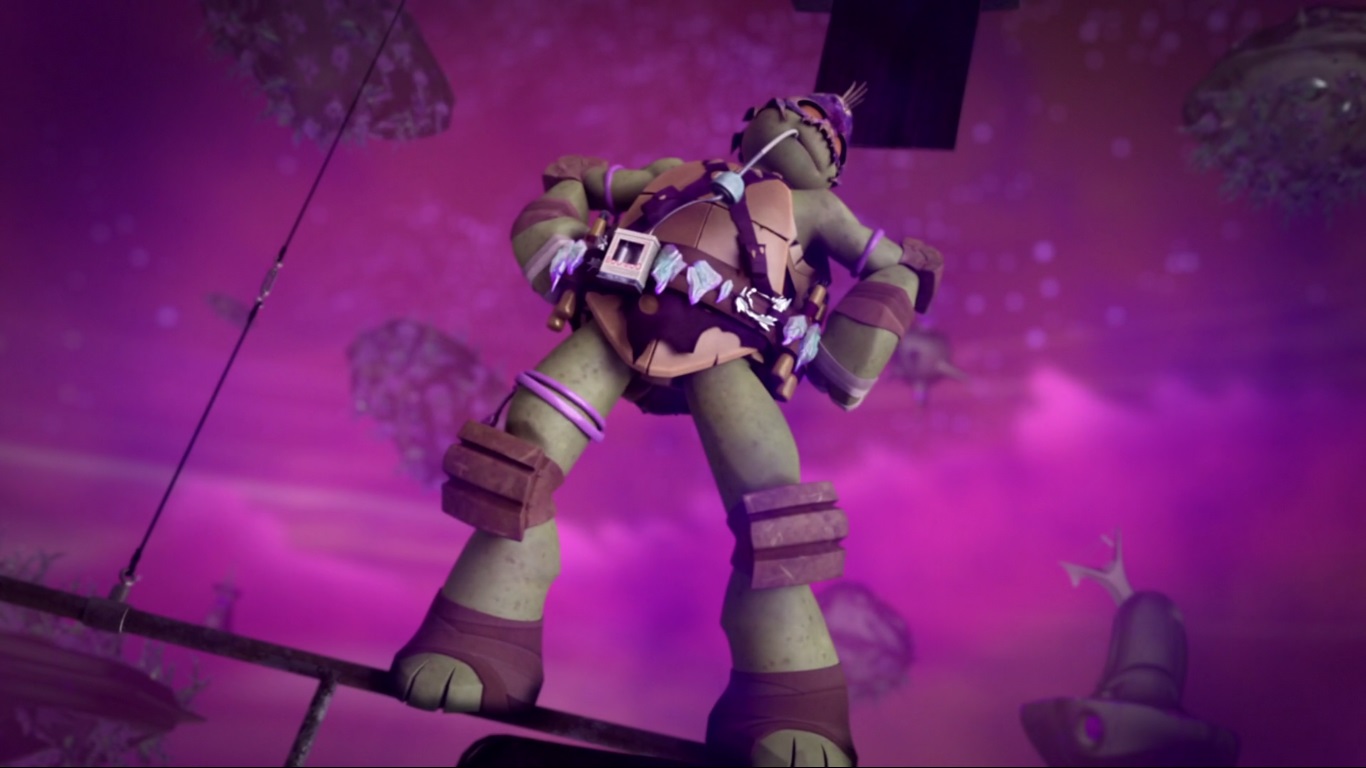 Leonardo observait les trois îlots spatiaux où étaient retenus les humains. Les tortues avaient à présent besoin de mutagène pour y mélanger la substance permettant d’inverser leur transformation. C’est alors que Michelangelo pointait du doigt un Technodrome. Il devait contenir une très grande quantité de mutagène. Pour l’atteindre, ils allaient se servir d’un vaisseau furtif à proximité. Leur plan devrait attendre un instant. Kraang Subprime faisait son entrée, menaçant ses ennemis. Michelangelo lui lançait des cristaux pour leur neutraliser. Les ultrasons de sa voix faisaient exploser les minéraux. Débarrassées de la créature, les tortues pouvaient se diriger vers le Technodrome. Kraang Subprime n’était pas vaincu pour autant. Encore conscient, il appelait à l’aide ses soldats et leur demandait d’envoyer un Dracodroid à leurs trousses.