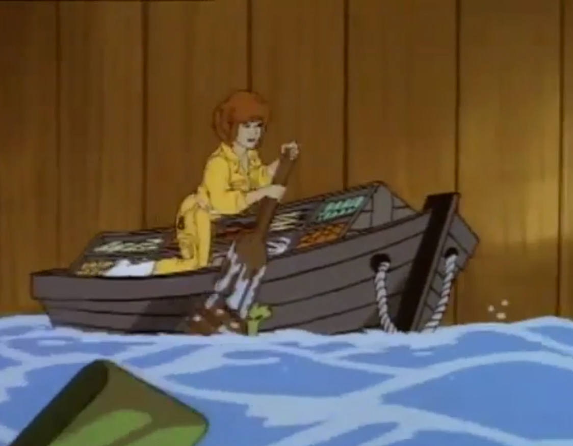 L’homme au masque de fer attendait justement le torrent, à bord de son bateau, à l’extérieur des égouts. Bientôt, l’eau se mettait à monter sortait violemment de la grille qui condamnait le souterrain. En quelques minutes, la ville se retrouvait sous un mètre d’eau. Et ce n’était pas prêt de s’arrêter ! Donatello avait une solution et présentait une amélioration sur le Turtle van, qui pouvait flotter au-dessus de l’eau grâce à ses roues.