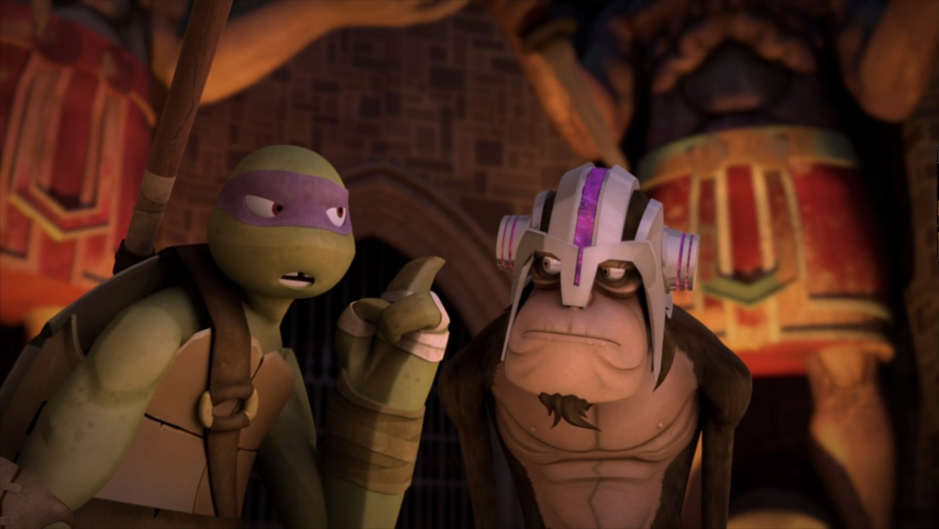 Dans le combat, Donatello avait vu ce qu’il se passait et avait tout compris. La colère suscitée par la provocation permettait de se libérer du ver au contrôle mental. Il en faisait de même avec le Dr. Rockwell, lui rappelant qu’il était loin d’être le génie qu’il prétendait être. Le singe savant libéré, il utilisait ses pouvoirs pour aider Slash à son tour. Les trois pantins étaient à présent guéris. Il ne restait plus que Shredder, qui avait tout observé sans prendre part au combat jusqu’alors.