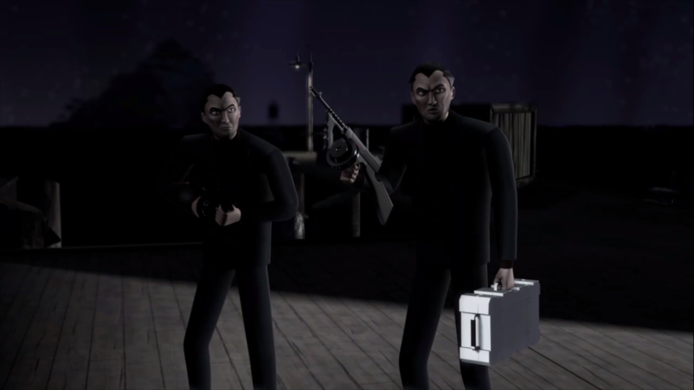 En pleine nuit, les jumeaux Fulci attendaient Tiger Claw sur les docks. Ils allaient échange rune mallette contenant le produit manquant à Shredder pour son sérum de contrôle de la pensée contre de l’argent.