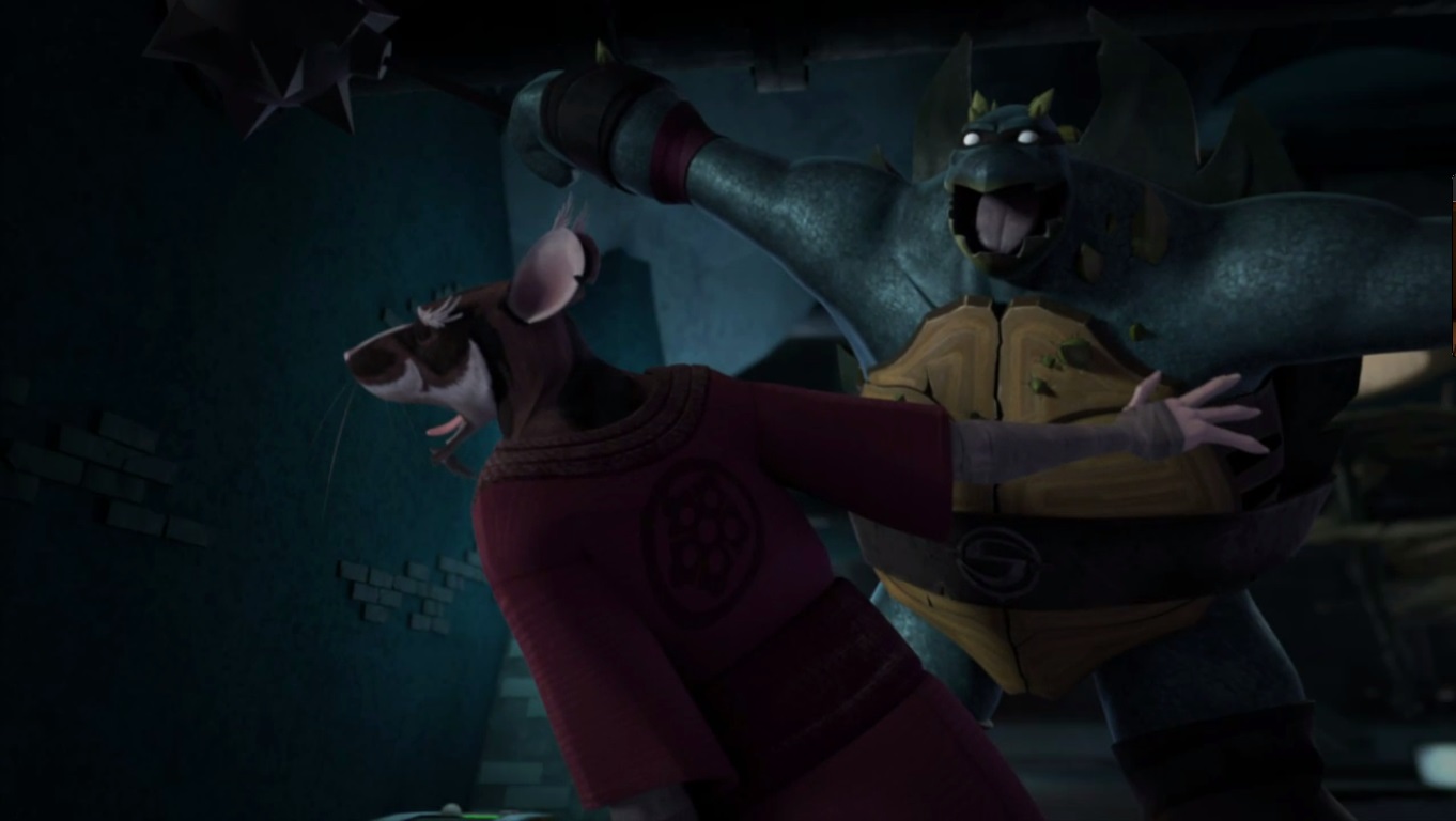 Les deux Mutanimals étaient conduits au repaire. Splinter veillait sur leur état de santé tandis que Slash racontait ce qu’il s’était passé. Il était soudain pris de douleurs au crâne. Le rat partait leur chercher de l’eau chaude. C’est alors que la tortue se calma, puis sans crier gare, il entra dans une colère sombre. Hurlant, il saisit sa masse d’arme et frappa Splinter en plein visage.