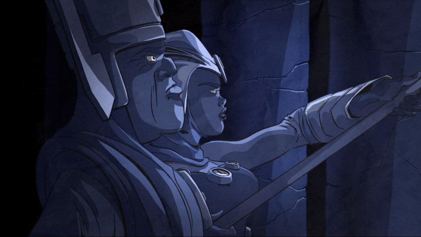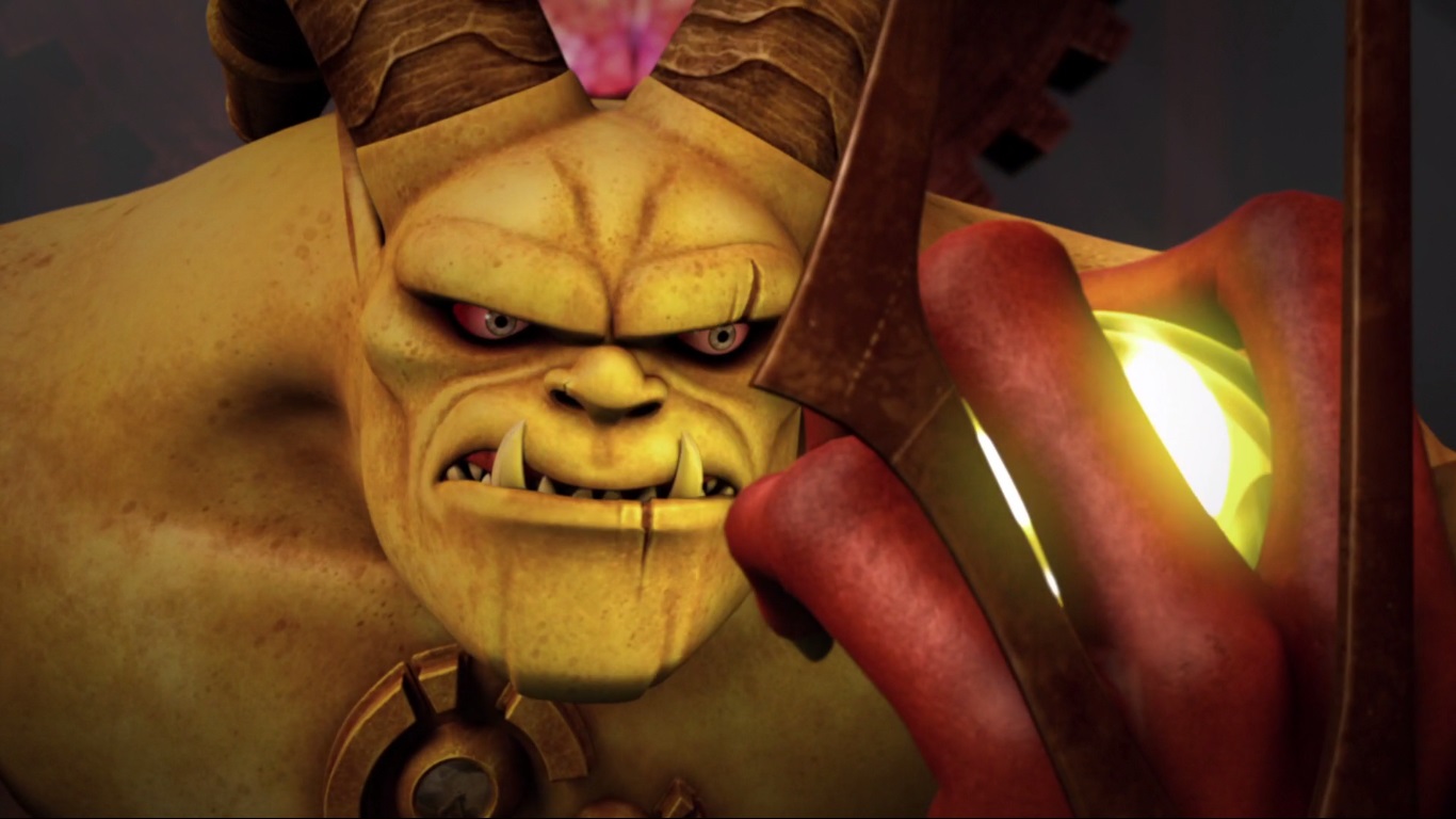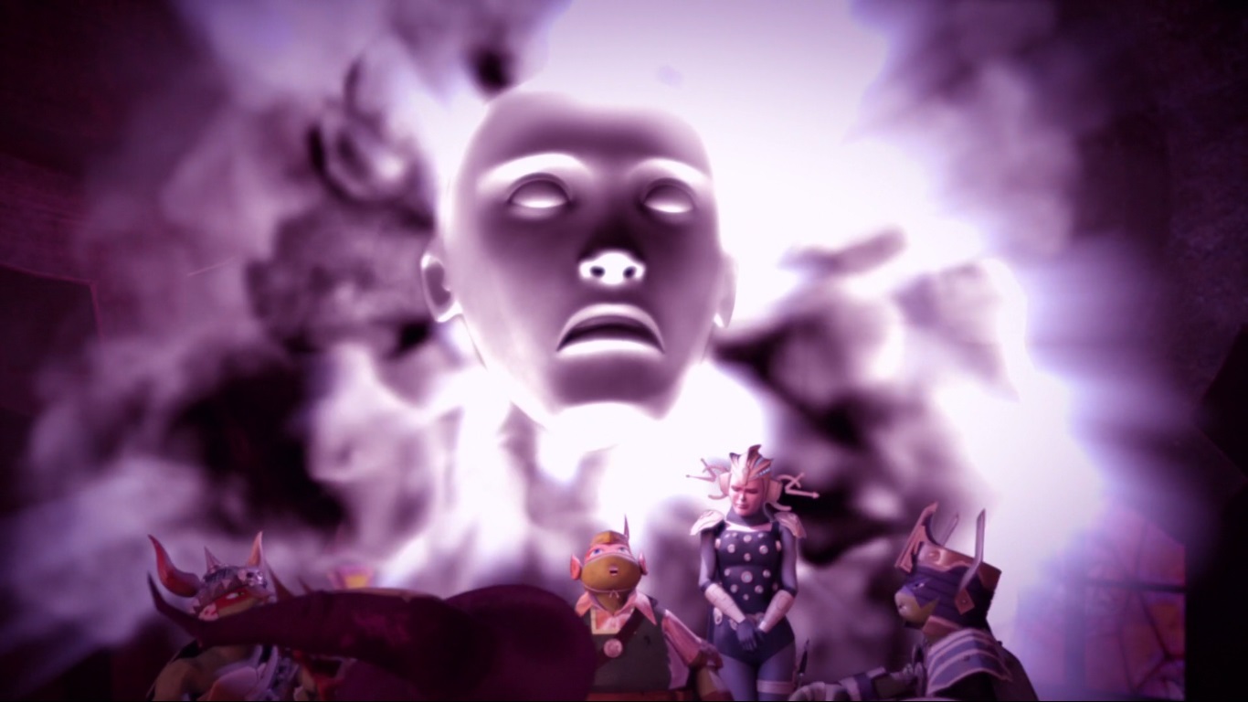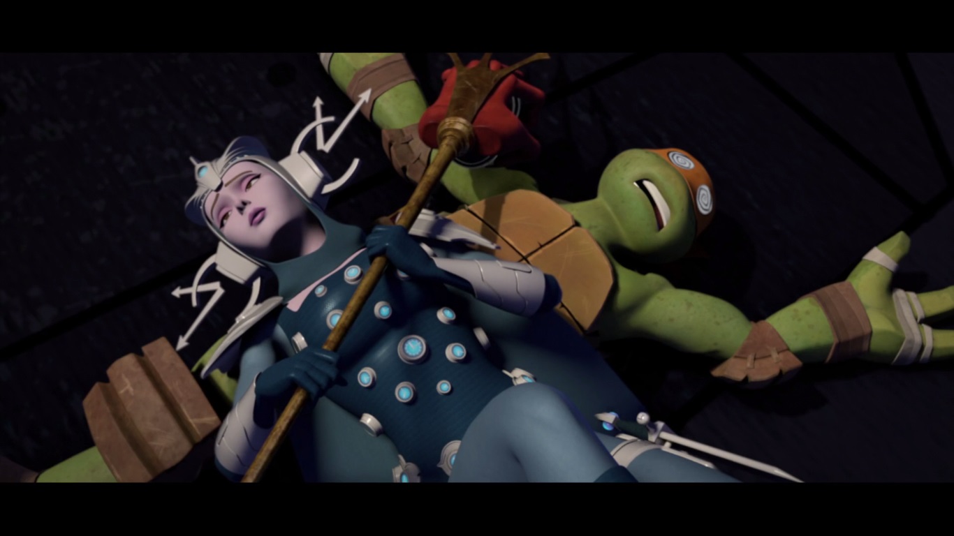 Michelangelo voulant impressionner Renet déclarait haut et fort ne pas en avoir peur. C’est à ce même instant que la créature fit irruption derrière le mutant à la langue bien pendue et le jeta au sol. Il s’empara dans la foulée du sceptre, se trouvant entre les mains de Renet. Une belle victoire se profilait. Il emprisonna les cinq compagnons dans une boucle temporelle.
