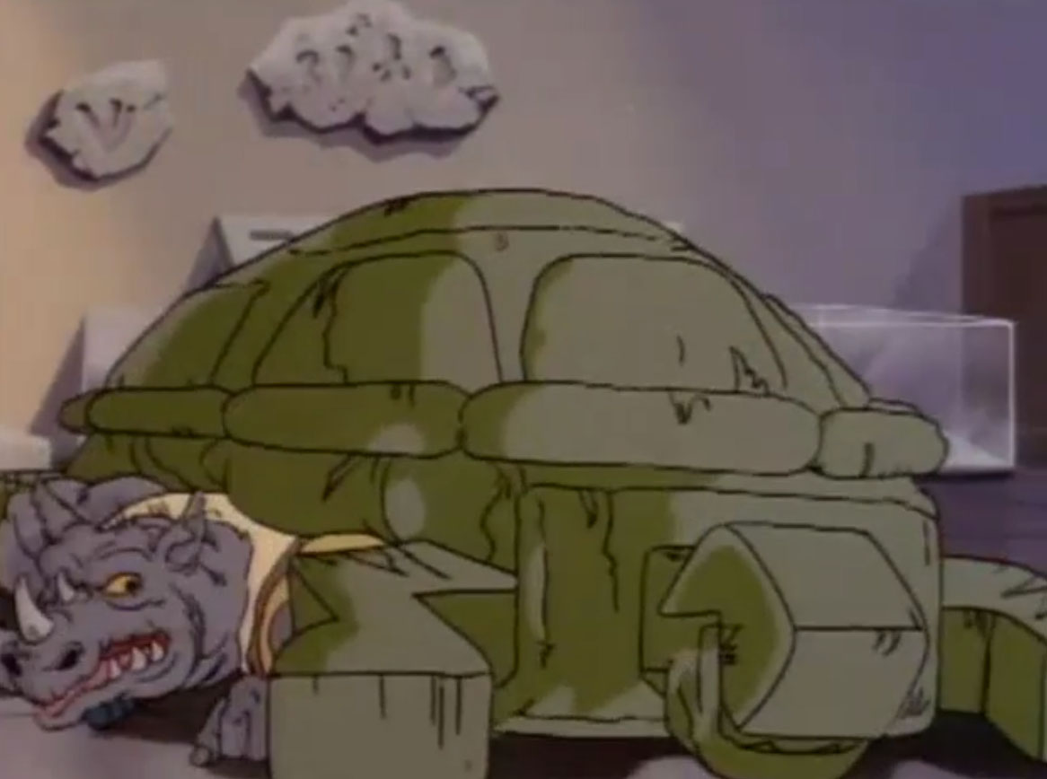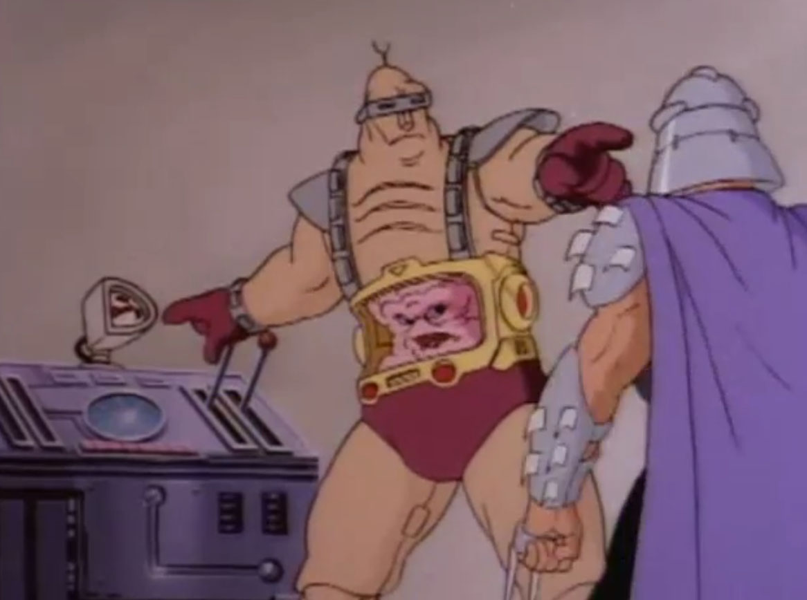 Un module apparaissait dans la salle de l’espace du muséum. Se trouvait à l’intérieur Shredder et ses deux mutants. La diversion de leur venue permettrait à Krang d’entrer dans le hangar des militaires afin de s’emparer de la machine. Les soldats de pierre qui l’escortaient neutralisaient les soldats en poste pour surveiller la machine. L’extraterrestre entrait à l’intérieur pour piloter le robot bipède. Faisant un essai, il tirait sur les deux militaires. Touchés par le rayon, ils s’évanouissaient.