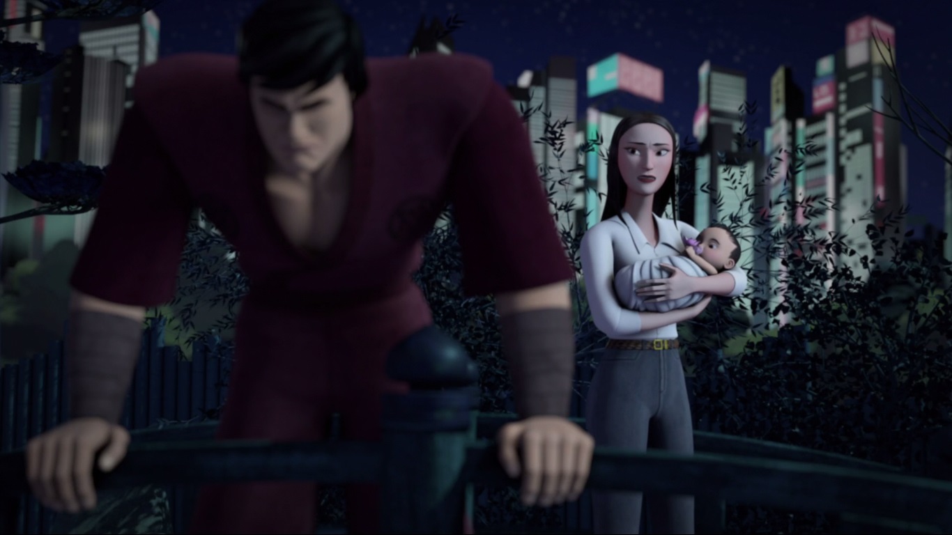 Pendant ce temps, Hamato Yoshi et Tang Shen discutaient dans le jardin de la propriété du Clan. Miwa était portée dans les bras de sa mère. Yoshi déposait une fleur dans les cheveux de la petite, s’avouant chanceux d’avoir cette si belle famille. Shen en profitait pour lui demander de réaliser un rêve : quitter cette vie monotone au sein du Clan et partir vivre aux États-Unis. Leur fille méritait mieux. Mais Yoshi était totalement contre l’idée de laisser de côté ses responsabilités et son père malade.