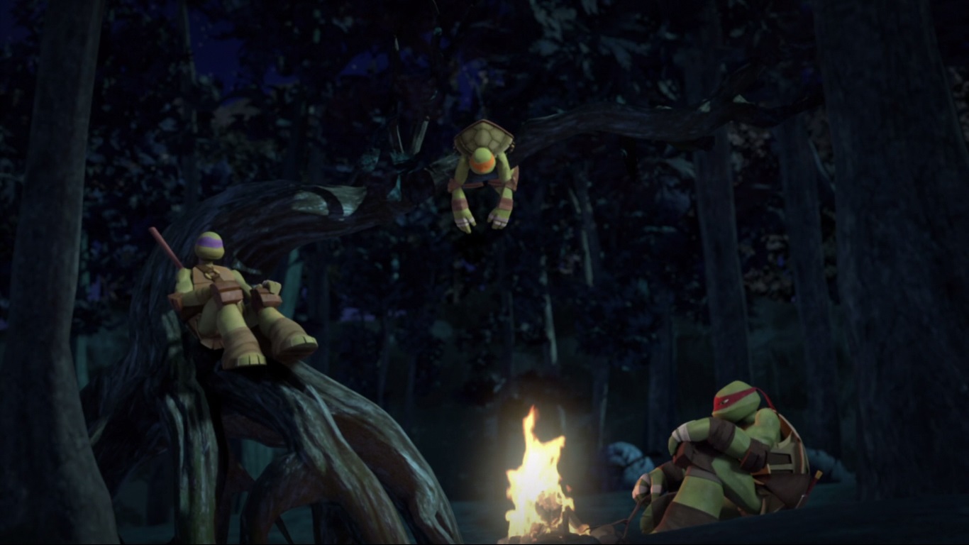 Le soir venu, autour d’un bon feu, les tortues méditaient sur les évènements de la journée et la raison de leur venue à cet endroit. Il y avait finalement très peu de chances qu’elles atterrissent à cet endroit, à cette époque précisément. Donatello était songeur. Mais y avait-il une raison cachée ?