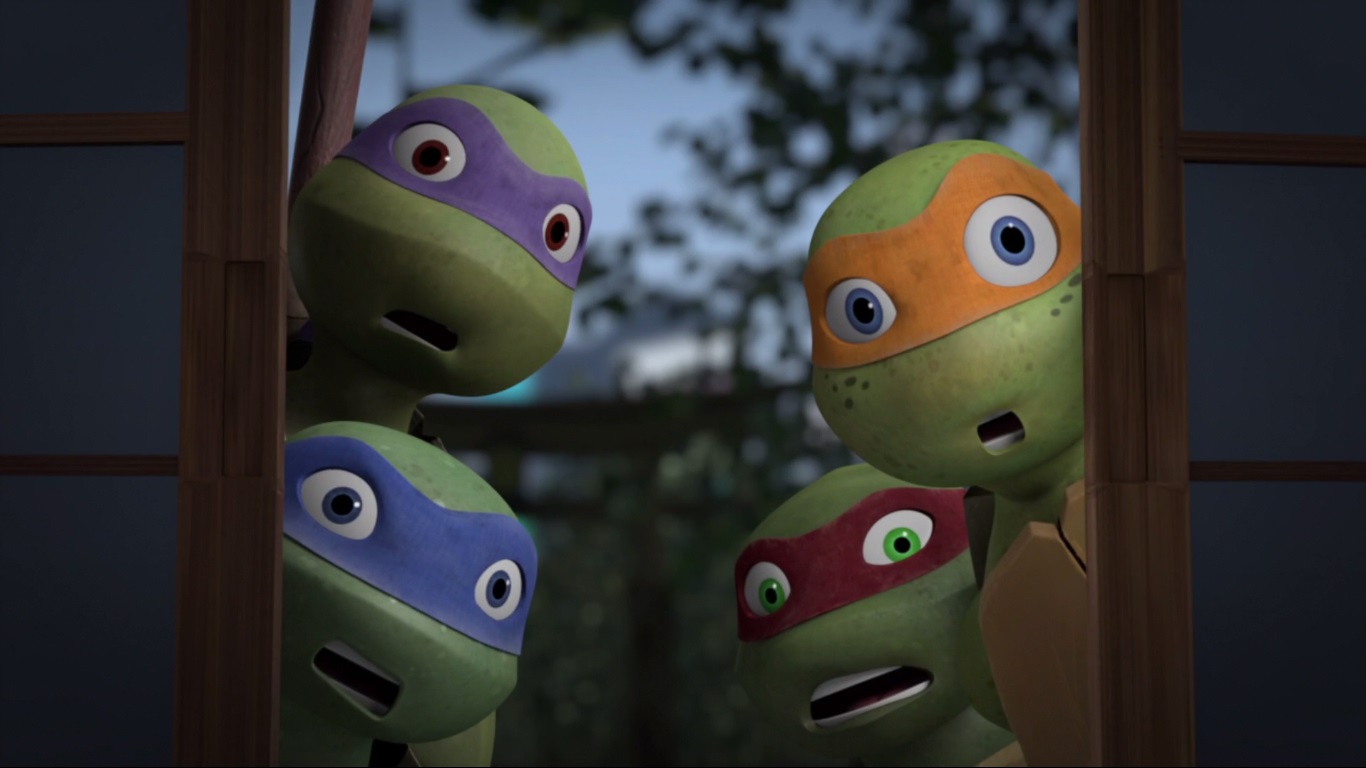 À l’intérieur, un vieil homme, Hamato Yūta, s’entretenait avec Saki qui lui confiait sa découverte de démons. Mais au même moment, un autre homme à la voix bien familière entrait, se moquant des croyances de Saki à propos de ces yokais : Hamato Yoshi. Les tortues étaient surprises de le voir, pour la première fois, sous sa forme humaine. Cela changeait des photos ! L’homme était très différent du sensei qu’elles connaissaient, moqueur et arrogant. Yuta les remettait à leur place, ne prenant pas cette apparition des démons à la légère. Cela n’était généralement pas de bon augure. Il laissait les deux frères d’armes, qui reprenaient leur entraînement.