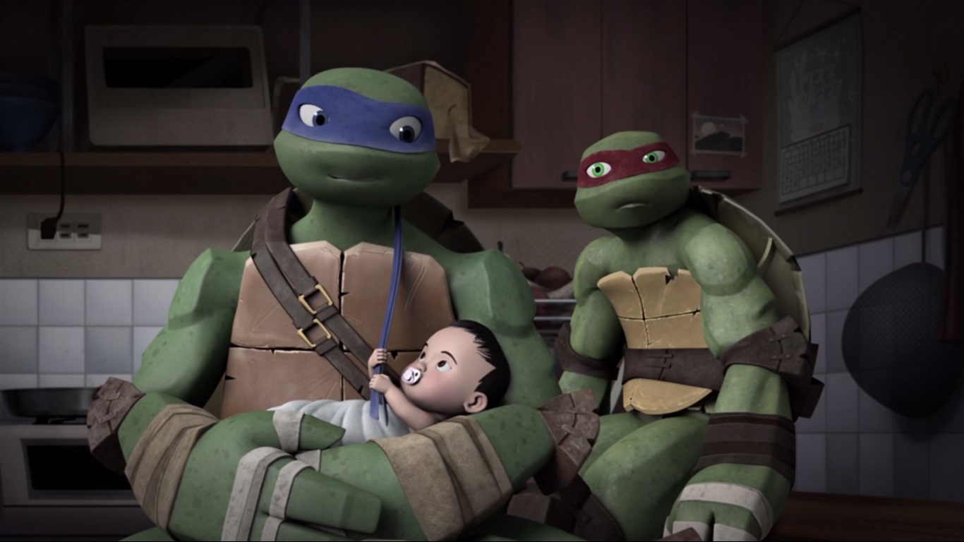 Calme, elle leur racontait son histoire tout en leur préparant des concombres, la nourriture préférée des kappas. Le temps pressait et les tortues en venaient au principal. Leonardo ne mâchait pas ses mots et lui recommandait de se méfier de Saki, même si elle pensait qu’il était bon. Hélas, la faire changer d’avis serait une lourde tâche. Raphael lui dit d’écouter son cœur, mais cela ne semblait pas la convaincre. Donatello s’inquiétait de plus en plus. April disparaissait de sa photo. Ils n’auraient guère d’autres choix que d’éliminer Oroku Saki au plus vite…