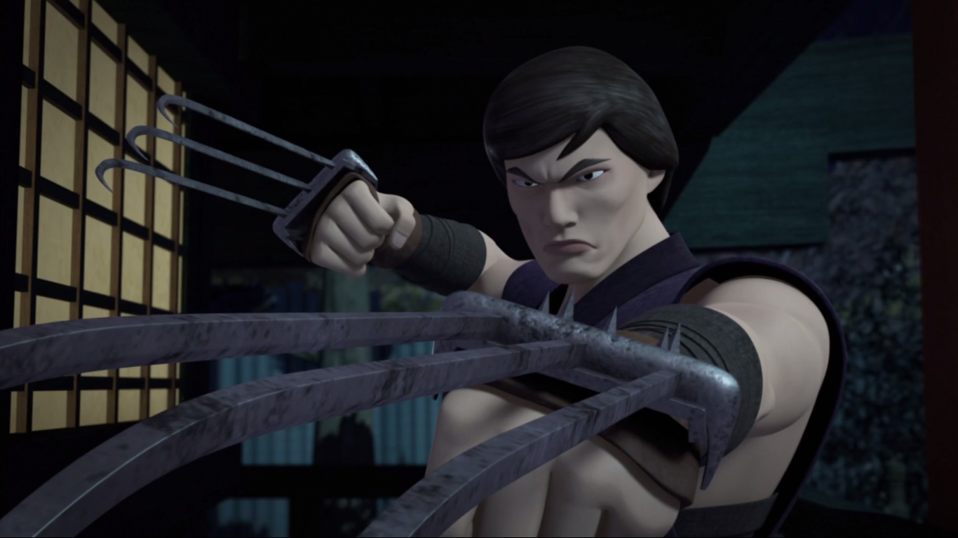 L’exercice ne tardait pas à devenir un règlement de compte entre les deux rivaux à propos de Tang Shen, l’amour de Yoshi. Saki était également très amoureux de la femme et reprochait à son demi-frère de consacrer sa vie à son clan, et non à Shen. Leur querelle amoureuse s’achevait lorsque les tortues, témoin de la scène, firent involontairement du bruit derrière la porte. Elles prenaient la fuite.