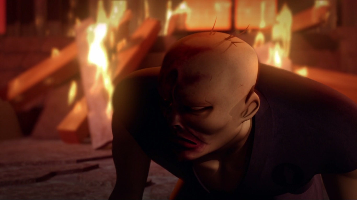Yoshi ne semblait pas vouloir le tuer, contrairement à son demi-frère équipé d’une paire de tekko-kagi. La lutte était sanglante. Des poutres de bois accusaient des marques de leur haine mutuelle. Pénétrant à l’intérieur du dojo, une bougie était renversée. Le feu s’emparait de la pièce, les flammes léchant le sol avant de monter sur les murs. Le lieu se transformait en brasier.