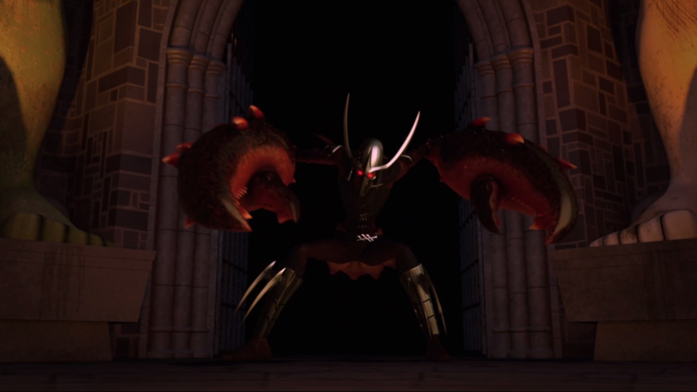 Leonardo avait profité de cette distraction pour crocheter la serrure et ouvrait la porte pour filer de cet endroit. La cuve remuait dans tous les sens, laissant sortir une créature gigantesque.