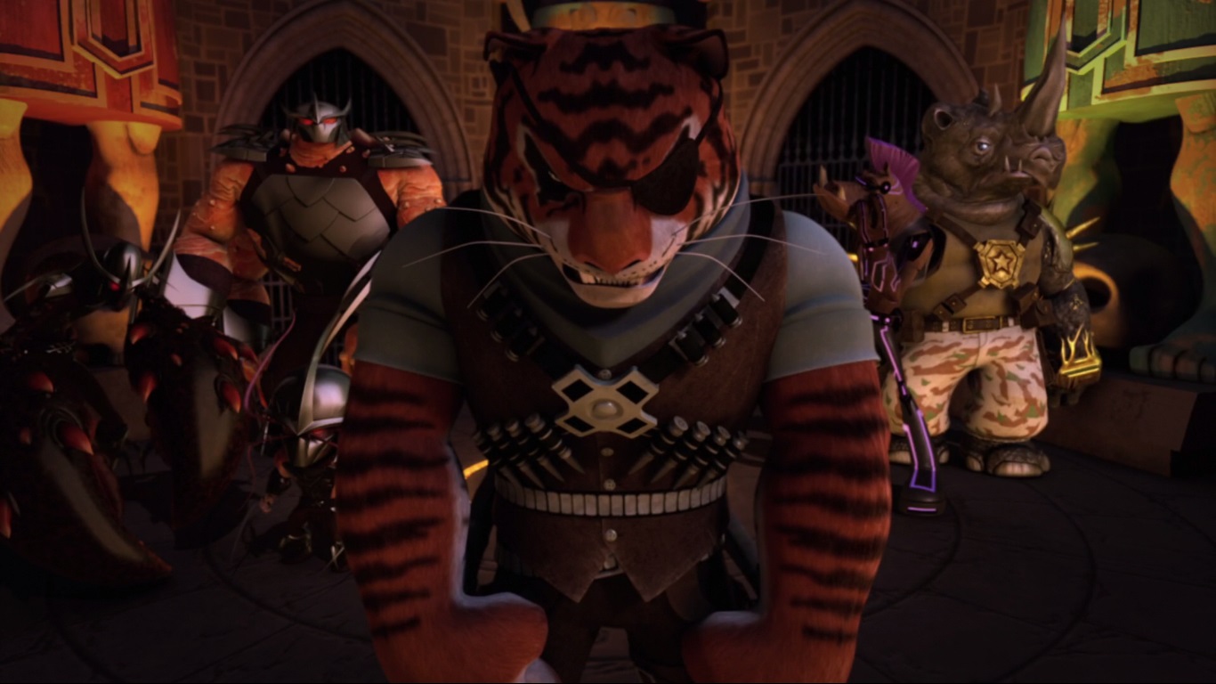 Dans le quartier général du Foot Clan, Shredder ordonnait à Tiger Claw de s’occuper de Bebop et Rocksteady, fatigué de leurs innombrables échecs et de leurs excuses insensées…