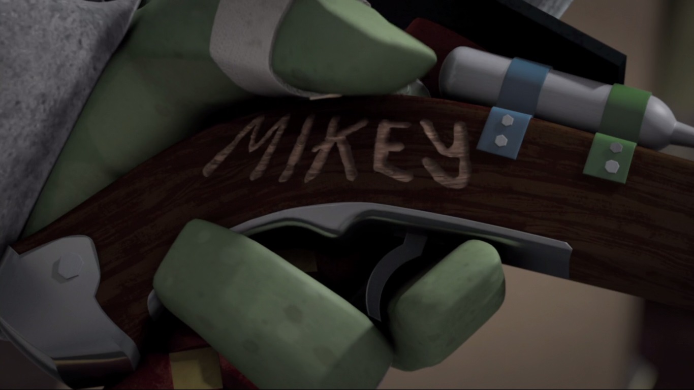 vision d’horreur de Michelangelo, s’imaginant devenir un mutant avec Leonardo fait beaucoup penser au visage des tortues des deux films de Paramount, notamment pour le visage de Michelangelo.