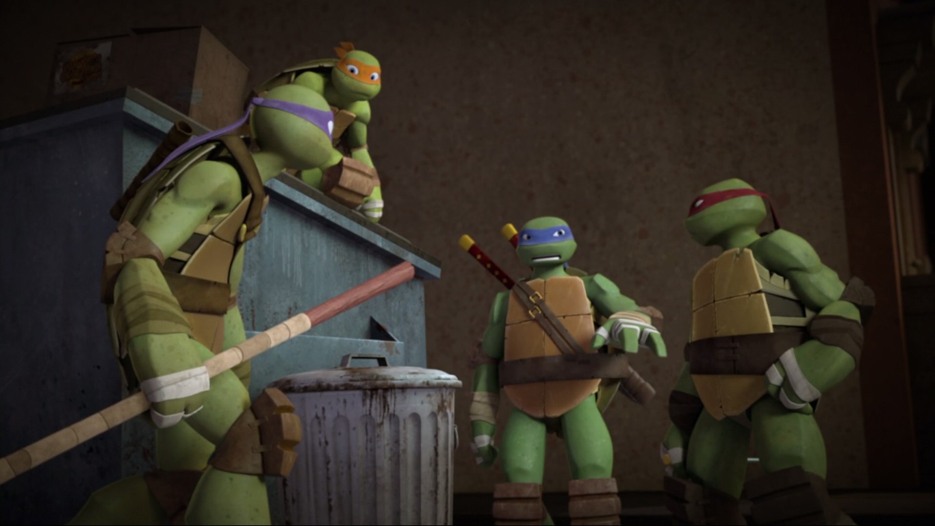 Dans les égouts, tandis que Michelangelo regardait un nouvel épisode de Grognard le barbare, ses frères tentaient d’élaborer un nouveau plan pour envahir les appartements de Shredder pour récupérer Karai. Donatello tenait surtout à ce qu’ils mettent la main sur un ver parasite. En l’étudiant, il serait probablement en mesure d’aider leur amie. Pour mener à bien leur mission, la tortue leur proposait d’essayer sa nouvelle invention : une poubelle furtive. Les tortues n’étaient absolument pas convaincues par cette « invention », composée d’une poubelle, d’une cuvette de toilette et le tout gentiment emballé dans un bon tas de crasses rendant l’ensemble très crédible. S’ils voulaient investir le quartier général du Foot Clan, ils n’avaient guère le choix.