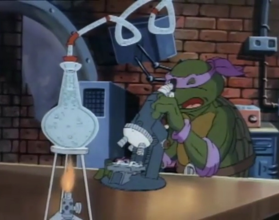 De retour à Channel 6, la jeune femme recevait des fleurs et des chocolats. Et même un chiot ! Le livreur lui disait que c’étaient trois jeunes personnes déguisées en marins. Il n’en fallait pas plus pour que Irma commence à se faire des films. April prévenait Donatello que l’équipage du sous-marin l’avait abandonné, faute d’énergie. Elle voulait que les tortues se rendent sur place, craignant que Krang et Shredder viennent s’en emparer. Sauf que derrière la tortue, ses frères se battaient dans le salon. Pour Irma. Splinter arrivait au même moment. Donatello et son maître commençaient à se demander si Shredder n’était pas en lien avec cet envoûtement. Après avoir analysé au microscope les restes des pizzas dévorées par ses frères, Donatello trouvait des restes d’une sorte de filtre d’amour.