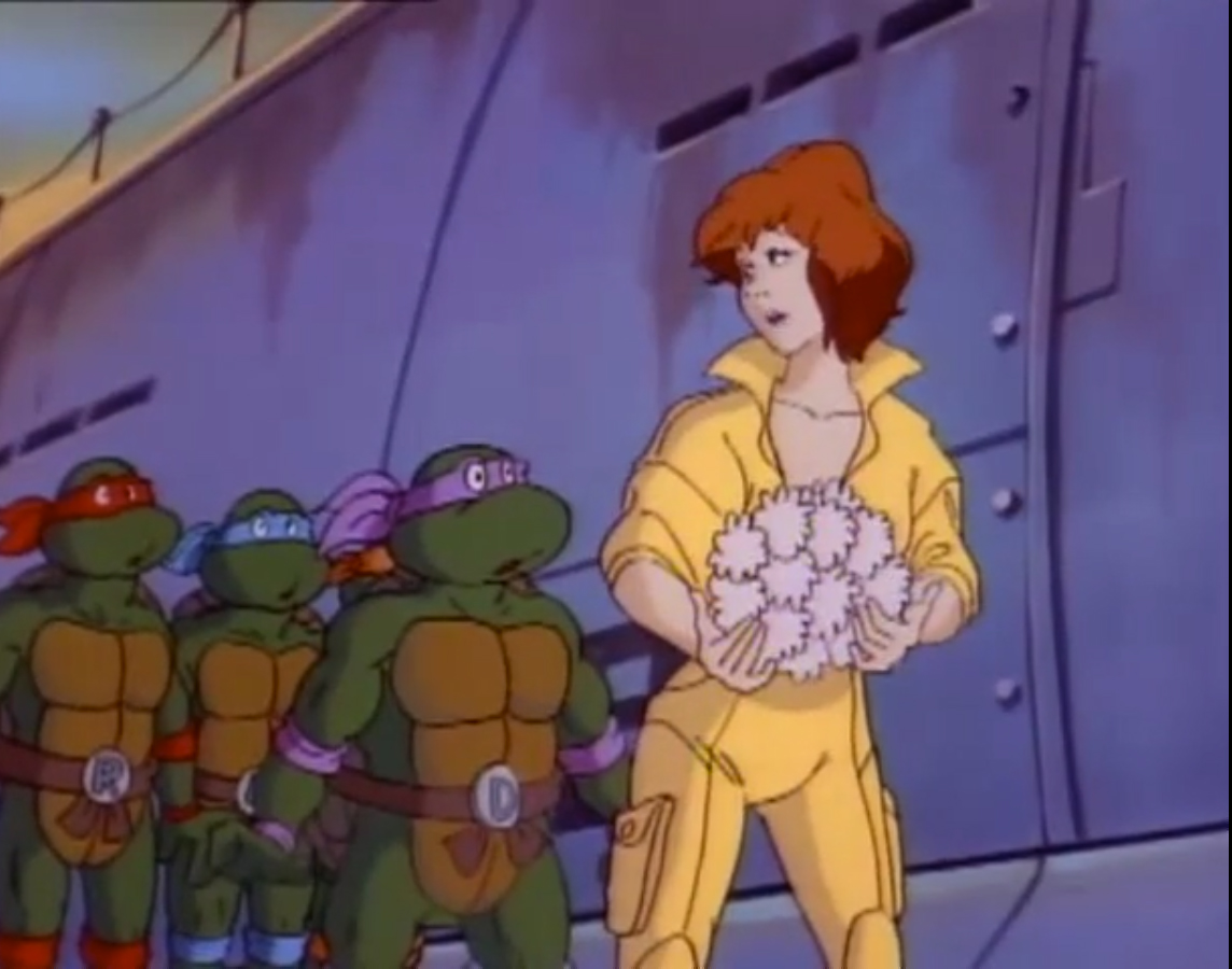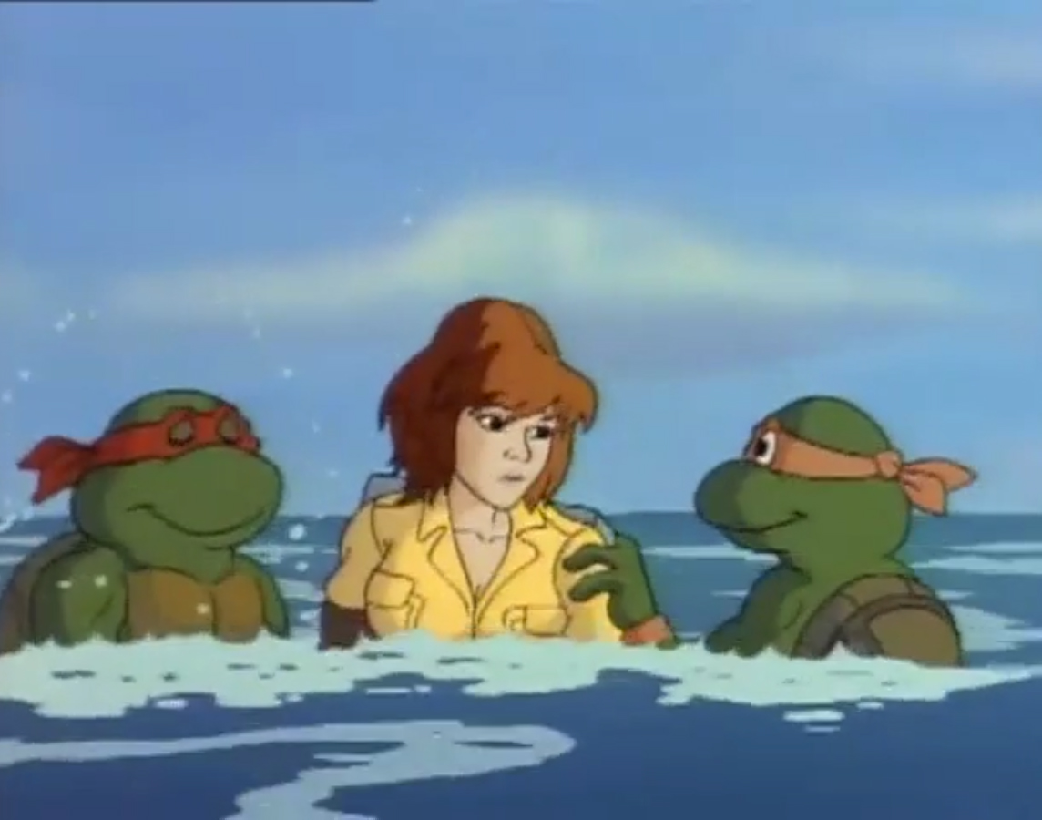 Le reportage terminé, April rangeait tout son matériel. Elle était accompagnée d’Irma, qui ne pouvait s’empêcher de discuter avec les marins qui travaillaient à bord du submersible. Hélas pour elle, tous étaient mariés, même si elle ne les laissait pas indifférents. Elle aurait espéré en trouver un célibataire… Mais April la pressait pour rentrer. Elle en profitait également pour appeler les tortues et les inviter à aller au cinéma avec elles. Donatello et ses frères acceptaient avec joie !