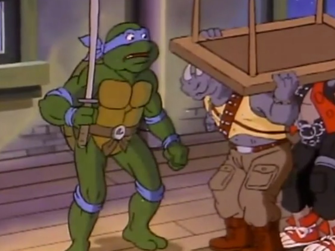 Ils rejoignaient leur supérieur au sol, dans une mare noirâtre d’huiles de canalisations. Lotus terminait en coupant de son sabre un oreiller, les recouvrant de plumes. Shredder et ses deux mutants partaient pour la surface et juraient que Krang regretterait ce qui venait de se passer. Il allait régler pour de bon le compte des tortues pour prouver sa valeur à Krang. Ils se rendaient dans un hôtel pour installer leur nouveau repaire.