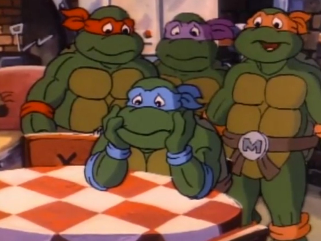 Leonardo était au plus mal. Terriblement amoureux de Lotus, il pensait ne jamais plus la voir. Au même moment, un livreur de pizzas entrait dans leur repaire, leur remettant une pizza avant de s’en aller. Ouvrant la boite, les tortues voyaient une pizza et une fleur de lotus. La jeune femme, cachée sous ce costume, quittait les égouts, espérant un jour pouvoir combattre aux côtés des tortues.