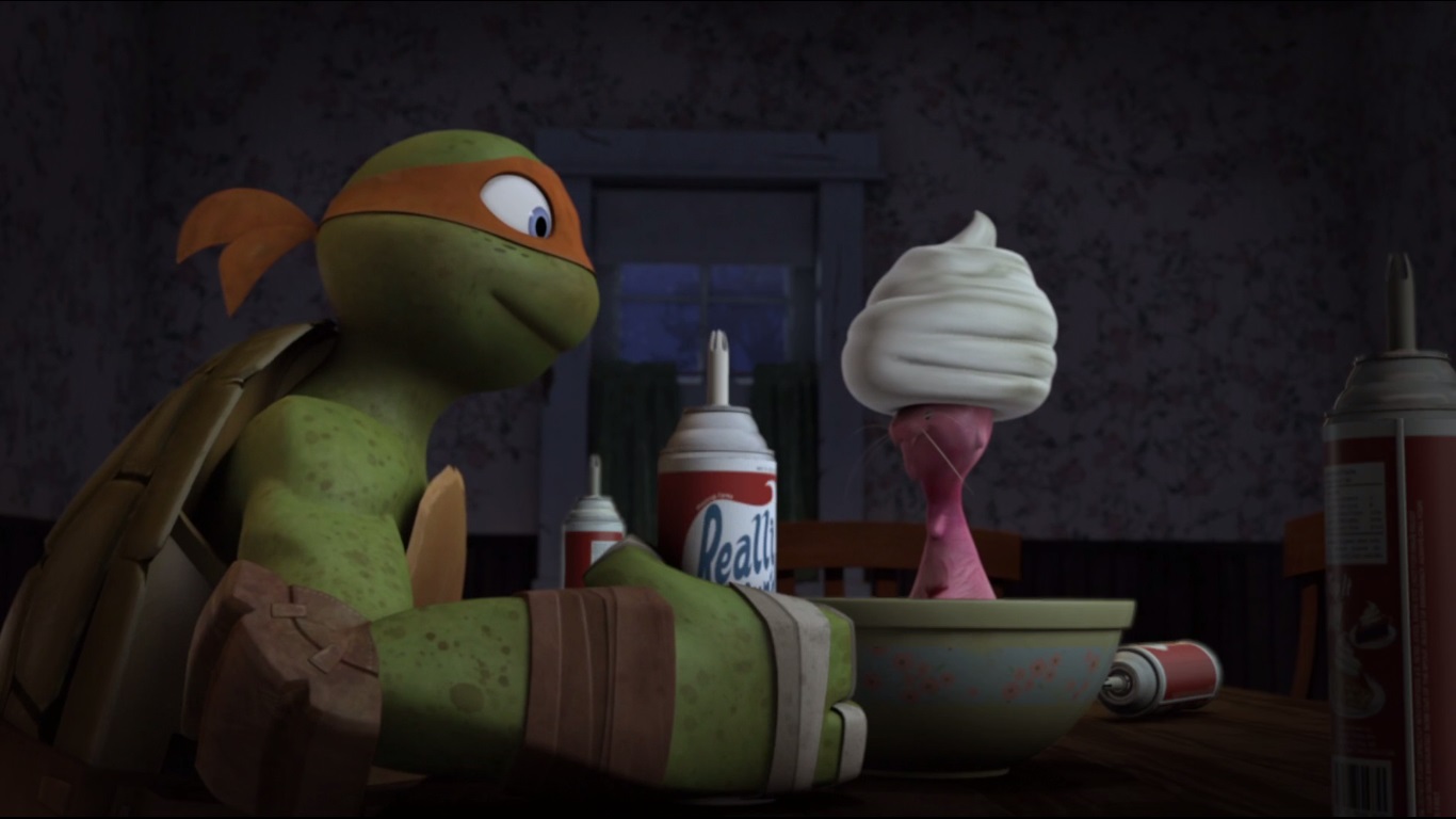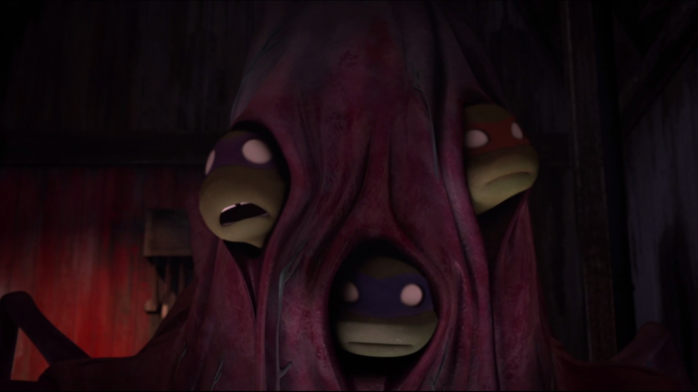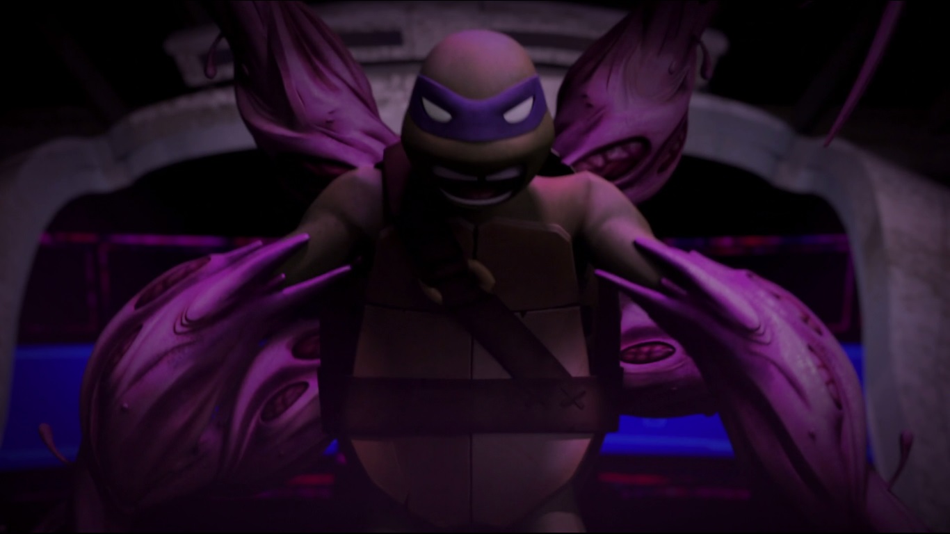 Dans la cave de la maison, Donatello étudiait le vaisseau pour comprendre ce que les kraangs avaient fait subir à la mère de son amie. Michelangelo entrait alors pour lui tenir compagnie. L’expression de son visage était très étrange. April entrait à son tour, demandant où se trouvait sa mère. Au même moment, Donatello découvre avec stupeur la vérité sur la femme et s’empresse de partir prévenir les autres. Son plan compromis, la créature, qui avait pris l’apparence de Michelangelo, recouvrit sa vraie apparence et envoya Donatello sur le carreau.
