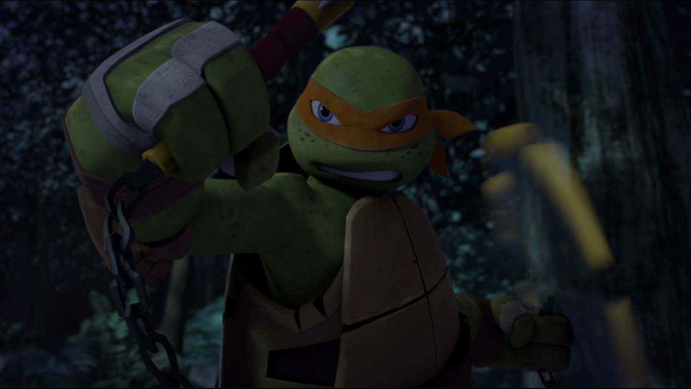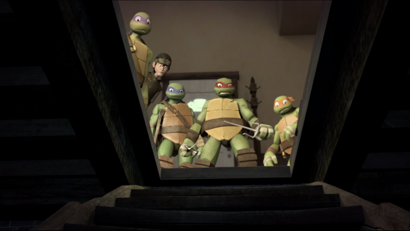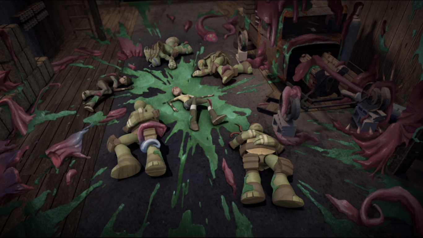 Dans la cave de la maison, Donatello étudiait le vaisseau pour comprendre ce que les kraangs avaient fait subir à la mère de son amie. Michelangelo entrait alors pour lui tenir compagnie. L’expression de son visage était très étrange. April entrait à son tour, demandant où se trouvait sa mère. Au même moment, Donatello découvre avec stupeur la vérité sur la femme et s’empresse de partir prévenir les autres. Son plan compromis, la créature, qui avait pris l’apparence de Michelangelo, recouvrit sa vraie apparence et envoya Donatello sur le carreau.