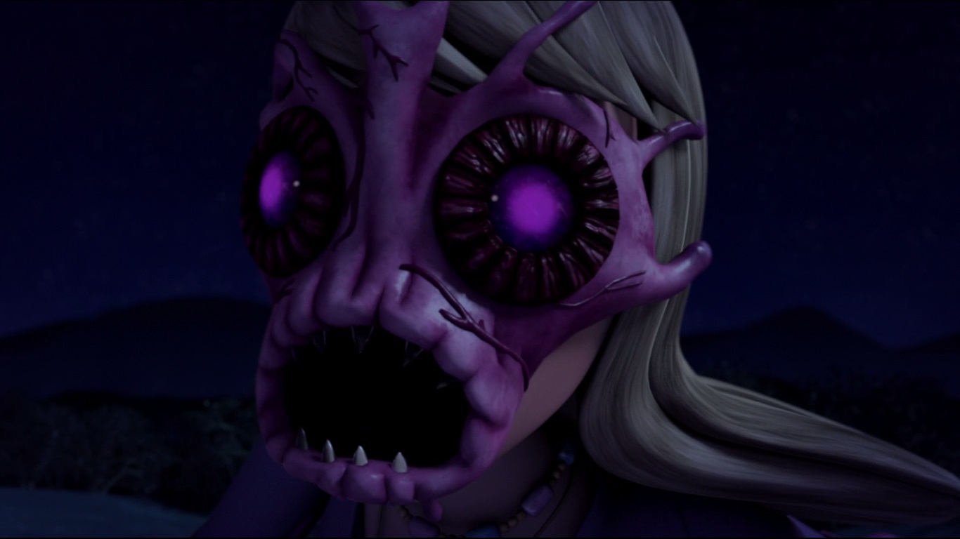 Progressant dans l’obscurité, il profita d’une lueur de la lune pour voir son vrai visage, devenu terrifiant. Elle s’approchait d’une petite mare, s’apprêtant à y déverser du mutagène. De son kusarigama, Michelangelo jeta à temps le produit à terre. En guise de riposte, celle qui se faisait passer pour la mère d’April brandit une paire de ciseaux. Elle comptait capturer April et la ramener aux kraangs. La tortue ne parvint pas à résister longtemps à la créature.
