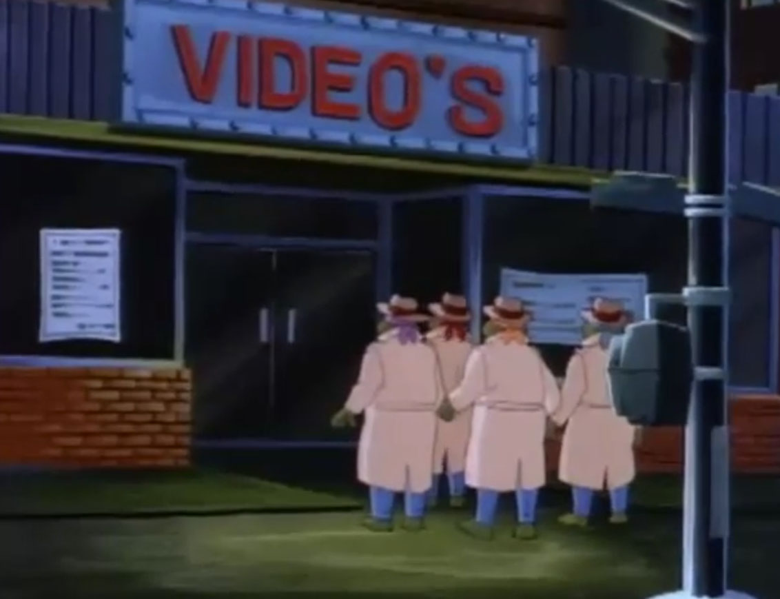 Malgré leur course, les tortues s’arrêtaient dépitées devant leur vidéoclub. Elles arrivaient trop tard, les portes étaient fermées. Sauf que ce n’était pas pour emprunter. C’était pour rendre ! Les voilà avec un jour de retard. Au même instant, un portail s’ouvrait, laissant en sortir le général Traag. L’homme de pierre tirait à tout va sur les mutants qui ne parvenaient pas à s’en défaire. Pire encore, Michaelangelo le traversait alors qu’il essayait de le mettre à terre. Soudain, le golem disparaissait. Un fantôme ? Donatello supposait plutôt que Krang faisait des expériences sur son portail interdimensionnel.