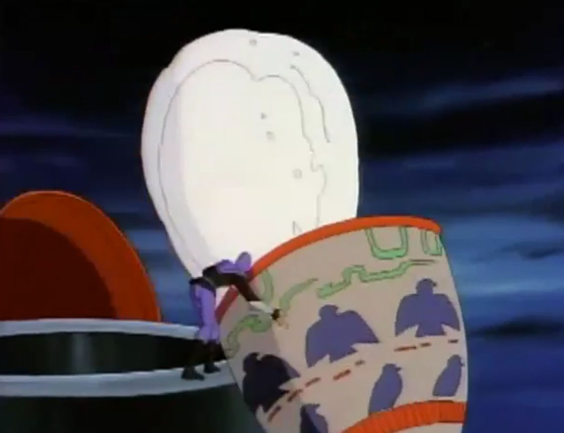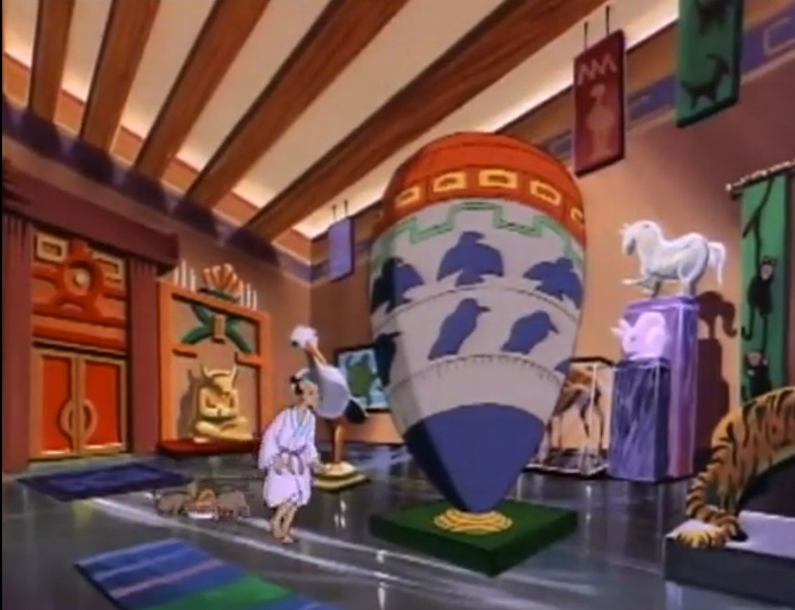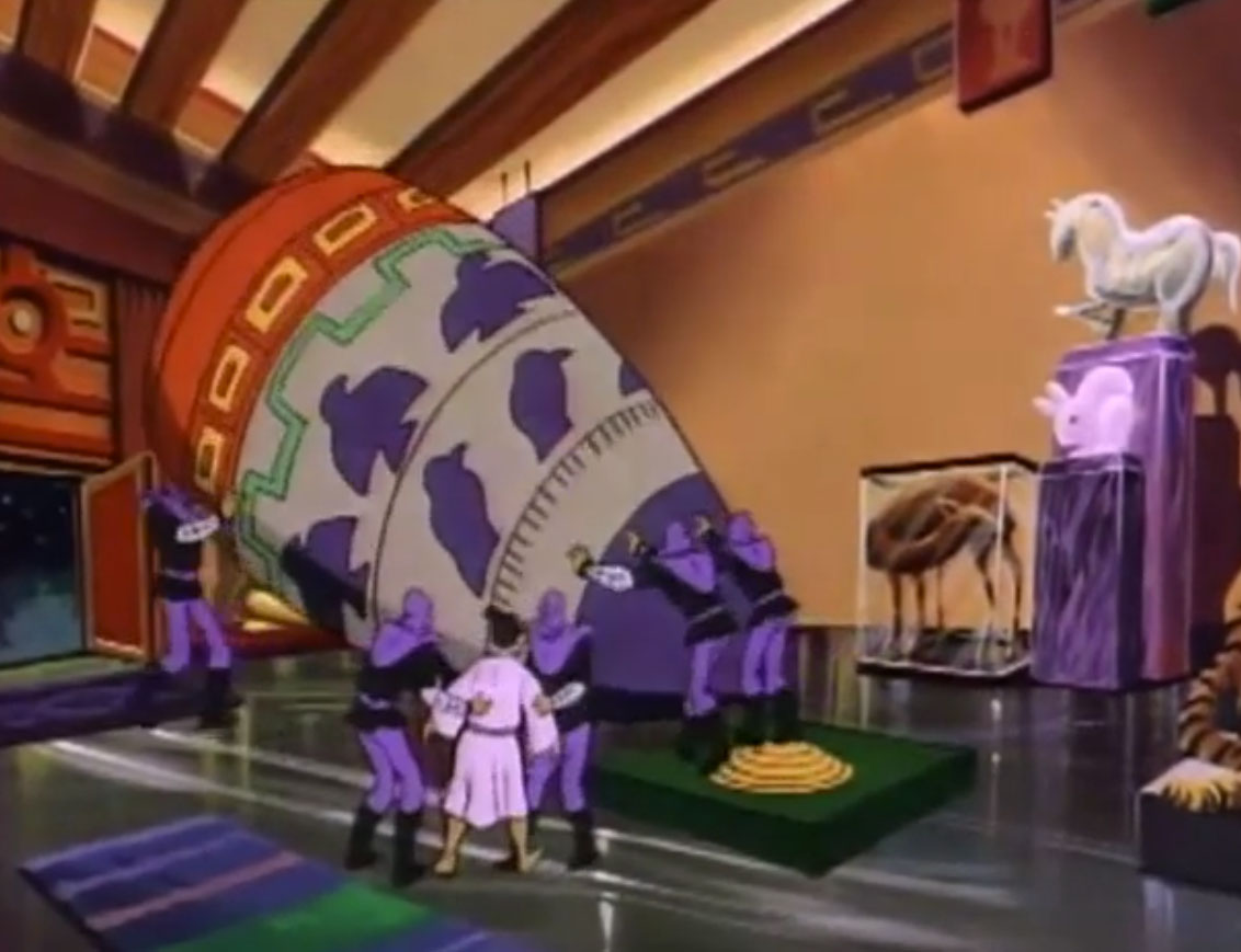 Dans le musée, Obento réalisait un dernier tour pour s’assurer que la collection était en parfait état. Principalement une immense jarre blanche et violette, cerclée de rouge en sa partie supérieure. Mais au même moment, les Foot soldiers faisaient irruption dans le musée et s’emparaient de l’artefact géant sous le regard apeuré du gardien.