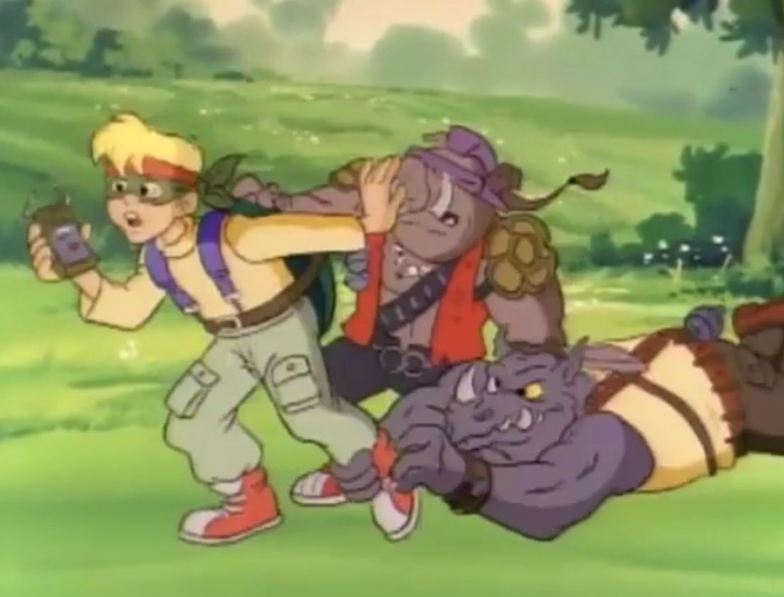 Rocksteady avait acculé les tortues dans la benne d’un camion. Mais Walt saisit un tuyau d’arrosage et envoya de la mousse pour éteindre les incendies sur le rhinocéros qui partait en hurlant.