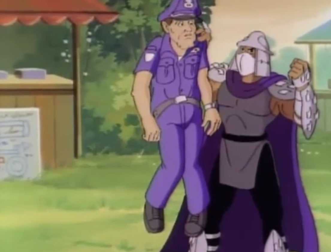 Waltz se réfugiait dans l’exposition, demandant de l’aide aux visiteurs. Même le gendarme n’avait pas envie de se mesurer à Shredder. L’adolescent avait à peine eu le temps de se cacher dans égouts pour échapper à Shredder…