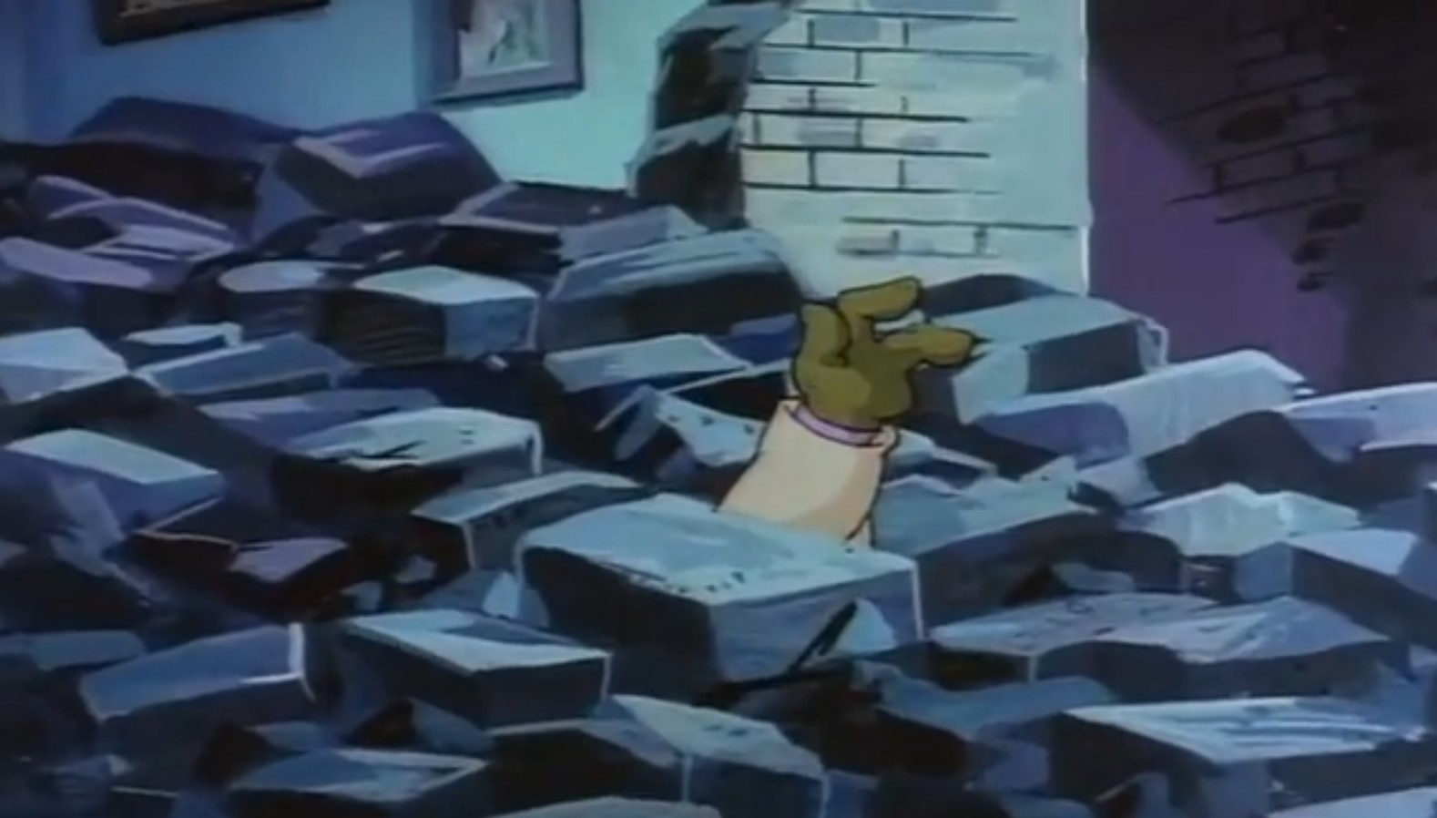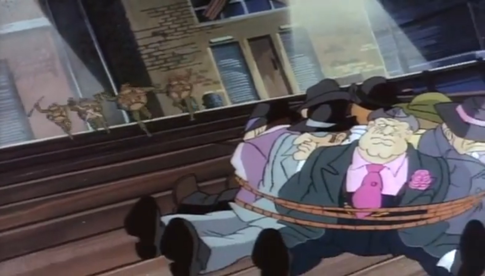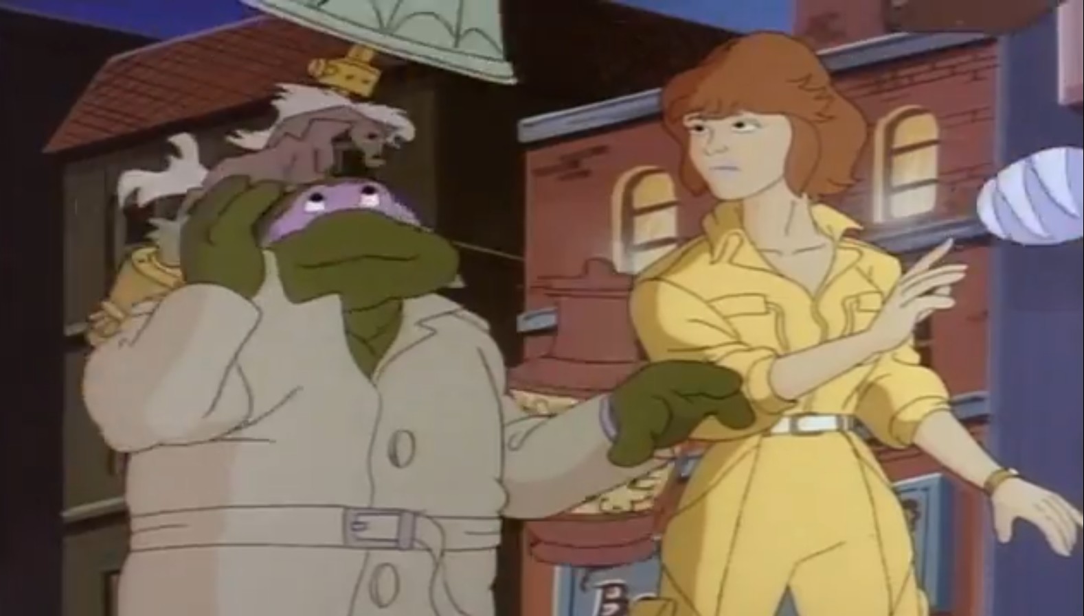 C’était la piste qu’allait suivre Donatello et April pour retrouver le ravisseur des mutants. Entrant dans la boîte de nuit, les deux enquêteurs partaient pour l’arrière du bâtiment. Ils y retrouvaient Vivaldi, qui ne trouvait toujours pas la statuette du hamster. Shredder lui donnait rendez-vous sur les quais à minuit. Il avait intérêt à trouver l’artefact. Si April et Donatello avaient entendu la discussion, ils ne tardèrent pas à se faire prendre. Prenant la fuite à travers la piste de danse, la tortue offrait un petit peu de résistance à ces agresseurs. April prenait part au combat, envoyant une tarte sur Vivaldi.