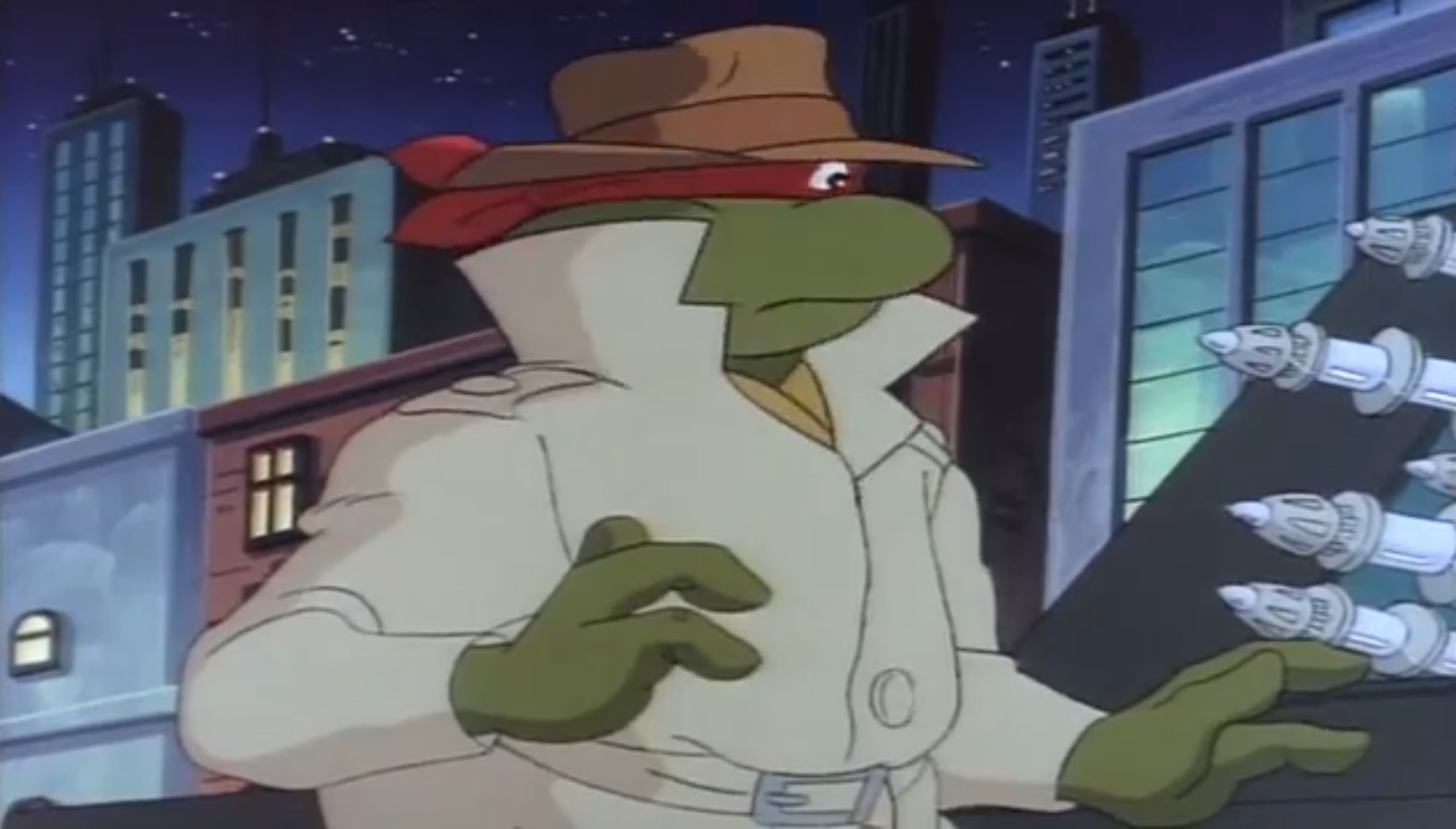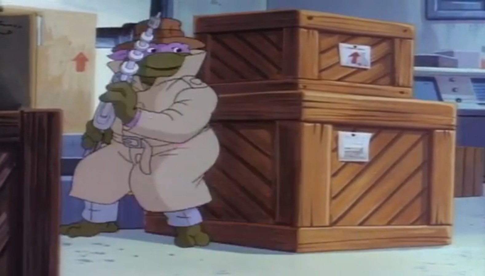 - Cet épisode, mettant en avant Donatello dans un trenchcoat, a peut-être motivé la figurine du Don, the undercover turtle, sortie chez Playmates Toys fin 1990.