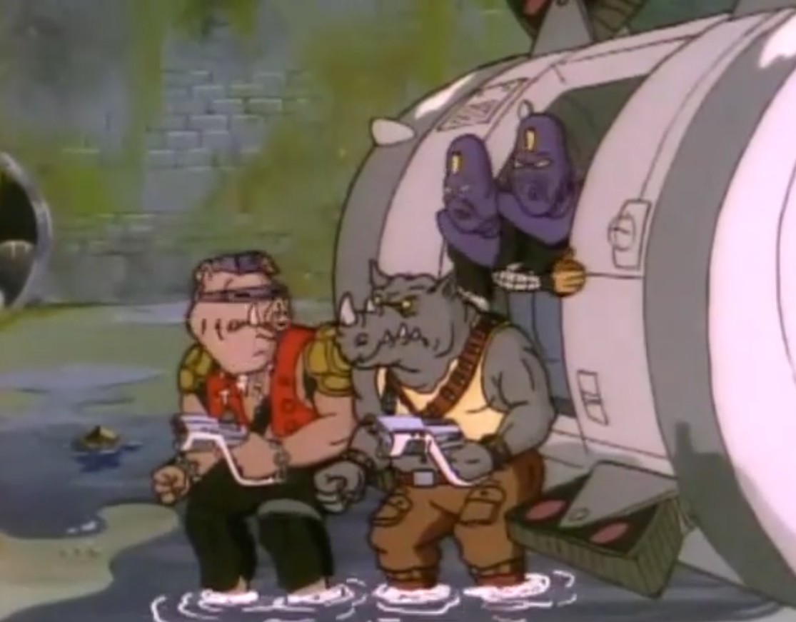 Les neutrinos et les tortues n’étaient pas loin. Kala retrouvait sa trace à l’aide du détecteur. Bientôt, ils voyaient Bebop et Rocksteady fuir le bâtiment devant lequel ils se trouvaient.