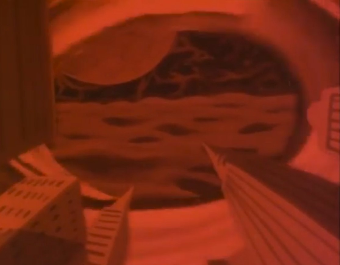 Dans le centre de la Terre, l’ouverture du passage n’était pas passée inaperçue. Krang avait même vu la créature traverser ce portail. Il s’agissait d’un grybyx, un animal de compagnie de la Dimension X « impossibles à vivre ». Il voulait le capturer pour résoudre la question de la lévitation sur Terre.