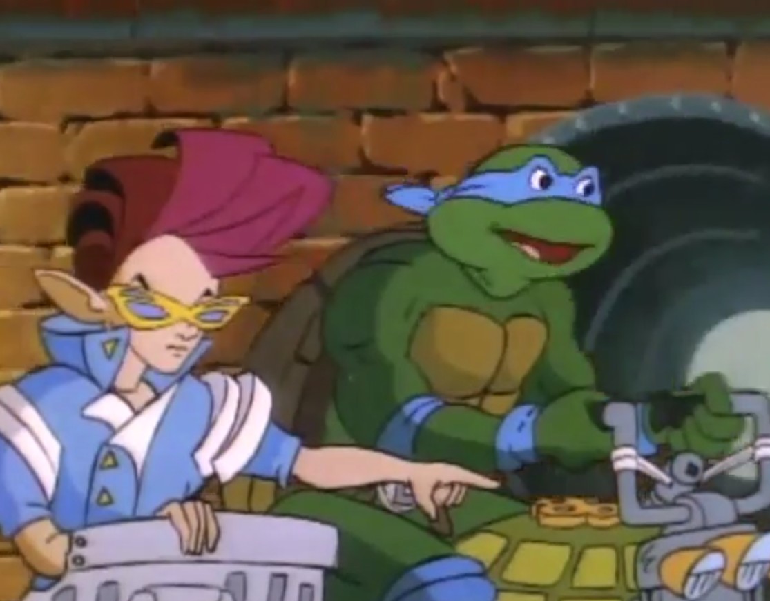 La piste menait les tortues aux docks. Trouvant le lieu trop tranquille, elles furent attaquées par un couvercle de poubelle qui lévitait. Au loin, une petite créature volante semait la panique. Les nunchakus de Michaelangelo volaient dans les airs. Tout comme les armes de ses frères. April vit où se cachait la créature, derrière des tonneaux. Les écartant, elle retenait toute son attention, faisant tomber les armes de ses amis au sol.