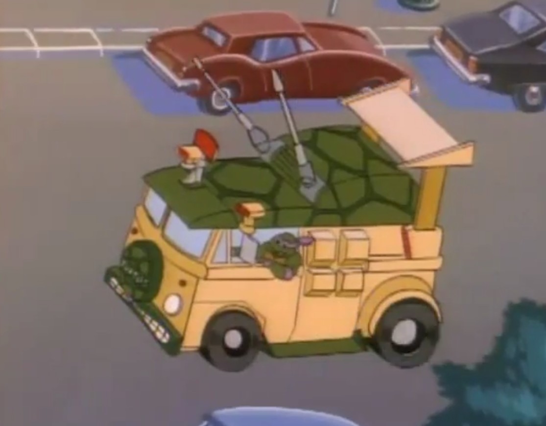 • Pour vendre toujours plus de jouets, nous avons dans cet épisode la très rare moto side-car Turtlecycle.