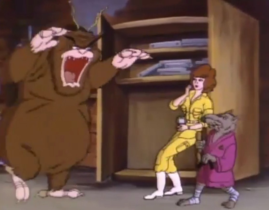 Le grybyx traversait la porte, défonçant les murs et jetant des voitures sur ses ravisseurs. Il faisait trois fois la taille d’un humain. Les tortues et leurs amis prenaient la fuite à leur tour, sans d’autres choix. Mais il était surtout aux trousses des deux mutants, bientôt rejoints par leur supérieur, les bras chargés de pièces de rechange. La créature leur faisait passer un sale quart d’heure, se vengeant de ce qu’ils lui avaient fait quelques heures auparavant.