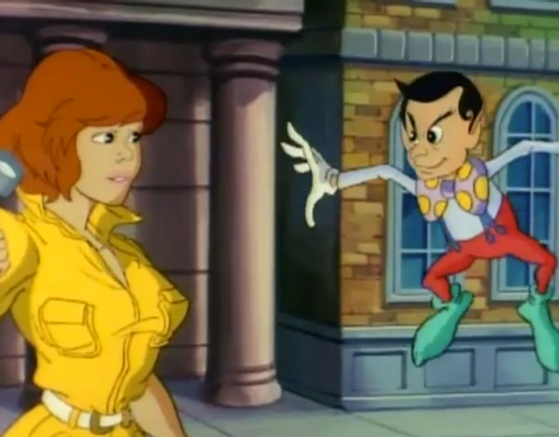 L’écran de contrôle du Technodrome affichait des images du lieu recherché, mais un petit bonhomme à la voix étrange fit irruption. Krang ne comprenait pas aux premiers abords ce qu’il voyait. En effet, la dimension qu’il recherchait devait être développée. Cette créature n’avait rien à faire là. À moins qu’il ne soit pas sur la fréquence de la Dimension Z ?! Lui demandant où il se trouvait, l’extraterrestre se rendait compte que son portail était sur le point de se fermer. Comprenant que c’était sa seule chance de se sortir de là, l’étrange personnage sautait à travers le portail et atterrissait dans les bras de Shredder. Il s’agissait de monsieur Ogg. Impossible pour lui de rester sérieux, c’était un grand farceur qui s’empressait de rendre Shredder fou. Il ordonnait à ses deux mutants de s’occuper de cette créature insolente qui venait de l’embrasser. Les deux brutes étaient immédiatement rétrécies par Ogg, qui avant de quitter la pièce, transformait le Technodrome en citrouille géante. Shredder jurait vengeance, mais Krang l’arrêtait. Il se déplaçait trop vite et était bien trop habile avec sa magie. Ils allaient tracer sa position depuis les capteurs de la base.