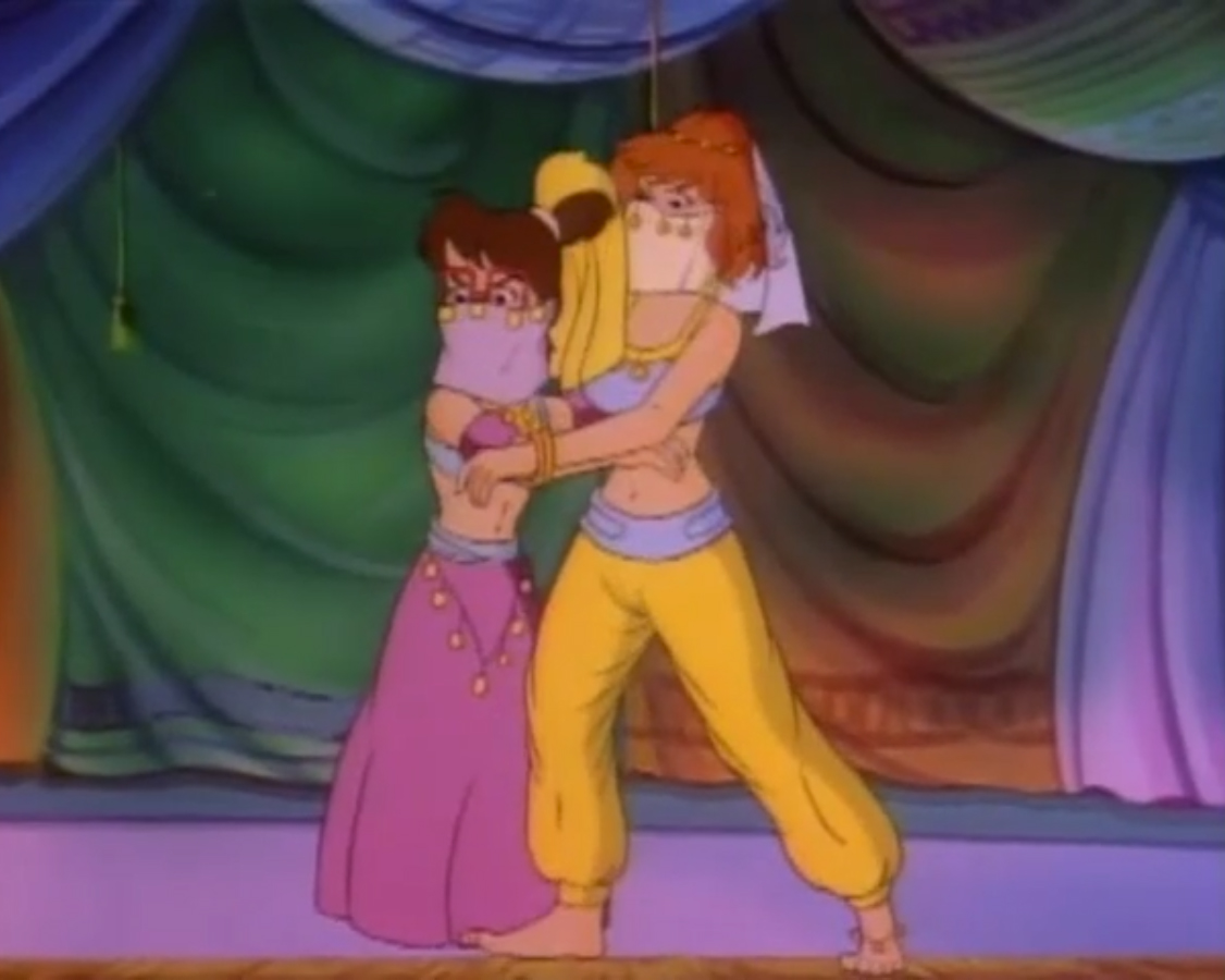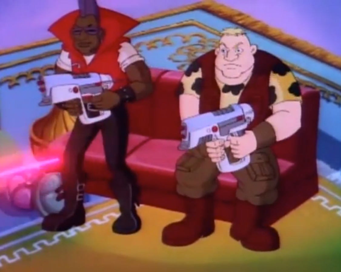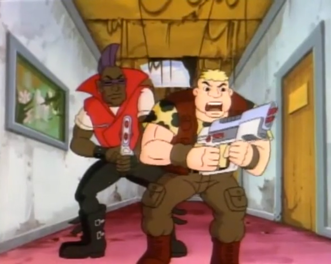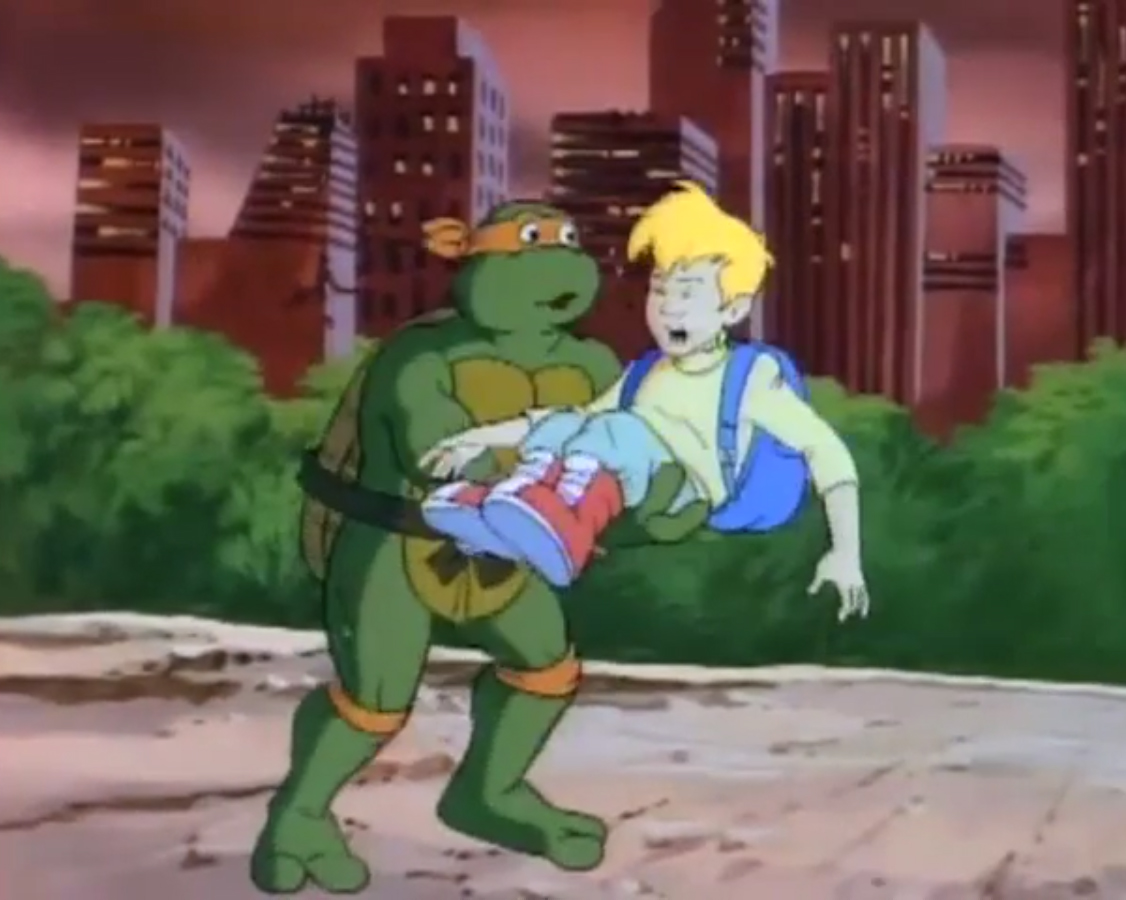 Arrivant devant l’immeuble de Channel 6, le constat était le même que pour le reste de New York. En ruine. Les tortues voulaient emprunter l’ascenseur, qui s’écrasait devant elles. Après avoir monté les étages à pieds, les tortues s’entretenaient avec le robot secrétaire qui remplaçait Irma. Mais celui-ci était en piteux état, à l’image du reste de la ville. Après un dysfonctionnement, il explosait. Les tortues allaient devoir se débrouiller une fois encore seules. Elles atteignaient finalement le bureau de la journaliste. L’intérieur n’avait rien à voir avec le bureau qu’elles connaissaient. Ni à ce que l’on pouvait voir dans le reste de la ville. Il s’agissait d’un harem ! Et April et Irma étaient les occupantes du lieu. À la vue des tortues, elles prenaient la fuite en criant au secours. Les quatre frères étaient surpris qu’elles ne les reconnaissent pas. Mais pire encore, les cris avaient alertés Bebop et Rocksteady. Surprenamment, ils n’étaient pas des mutants, mais bien des humains ! Et comme les autres, ils ne reconnaissaient pas les tortues. Les deux brutes sortaient des armes laser de derrière le canapé pour tirer sur les intrus. Leonardo grimpait aux rideaux pour les décrocher et les faisait tomber sur les deux