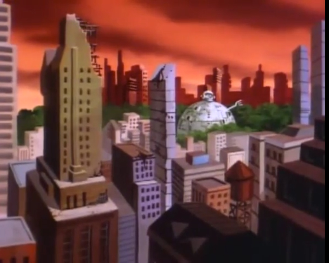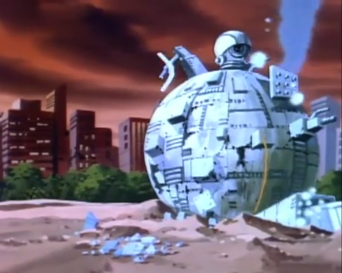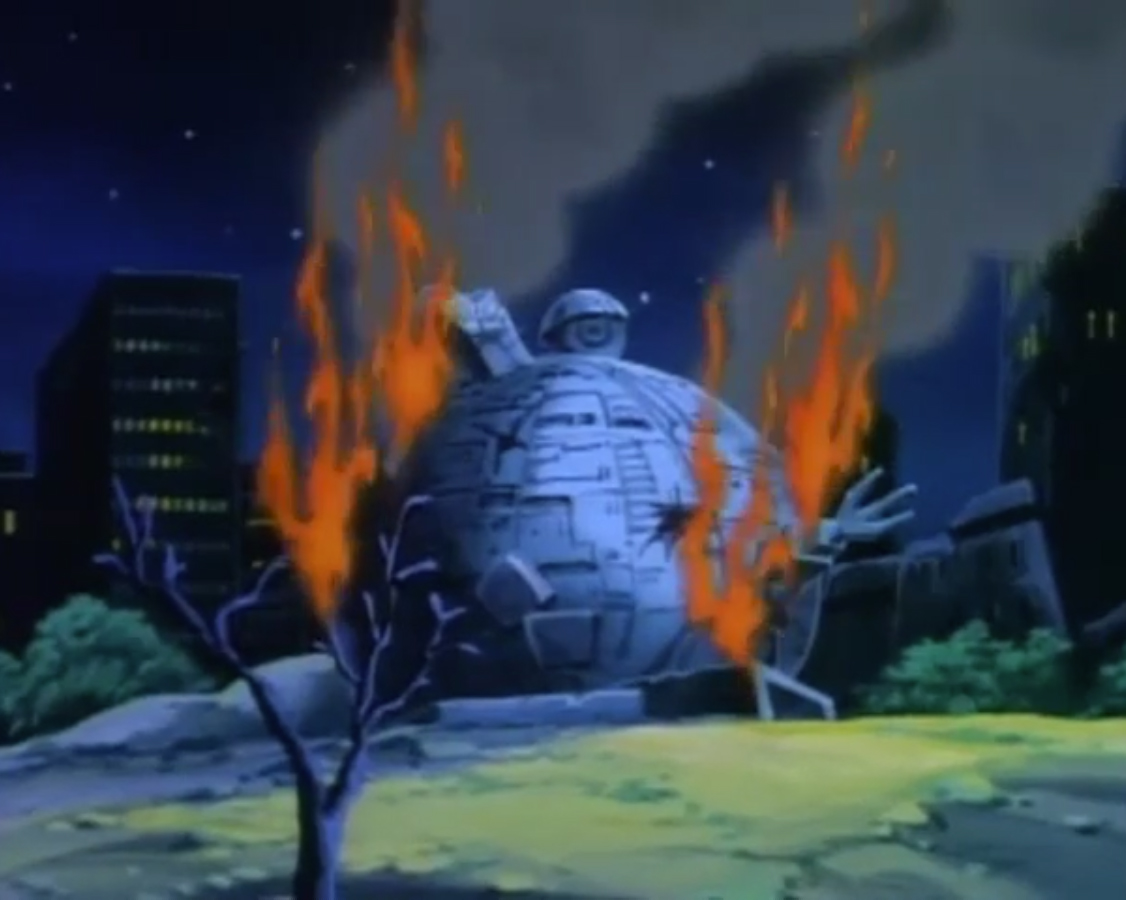 Le Technodrome apparaît tout petit dans cet épisode. Nous sommes très loin de la sphère gigantesque qui attaque New York à chaque fin de saison (La victoire finale, S3 E47).