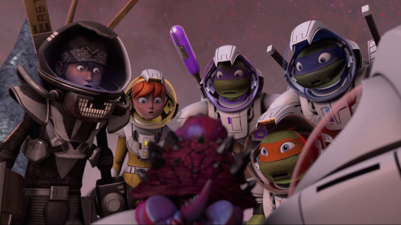 Une fois le danger éloigné, Raphael recouvrait ses esprits et avait de la peine pour Chompy, qui avait péri avec sa mère qui cherchait à le protéger. Soudain, il vit la petite tortue grimper sur sa carapace. Leonardo était surtout très inquiet pour le destin de la Terre. Les triceratons avaient complétés l’arme ultime. Dans le destroyer, Mozar conduisait Dregg dans une pièce où se trouvait son argent. Celle-ci était vide. Le seigneur se Sectoid était expulsé par le sas et terminait dans l’espace, où il commençait à geler.