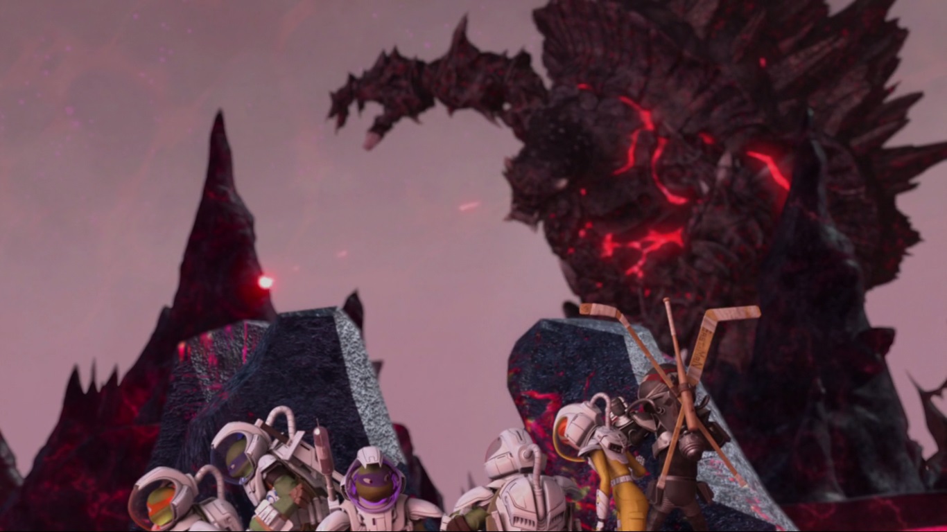 Si Michelangelo se délectait en regardant la série animée de Chris Bradford, Raphael l’appelait en salle principale de l’Ulixes pour une réunion. Tout le monde dans le vaisseau, y compris Michelangelo, en avait assez de l’espace et désirait rentrer sur Terre au plus vite. Mais pour cela, ils allaient devoir trouver le dernier fragment du générateur de trou noir, se trouvant dans la galaxie ZZ3 Plural X Beta, plus précisément sur une planète de magma appelée Ever-Burning Fire, gardée par Tokka. Il s’agissait de l’une des six grandes créatures cosmiques de l’univers. Ils allaient devoir faire au plus vite, car la flotte des triceratons était déjà en approche. Ils n’avaient cette fois pas le droit à l’échec.