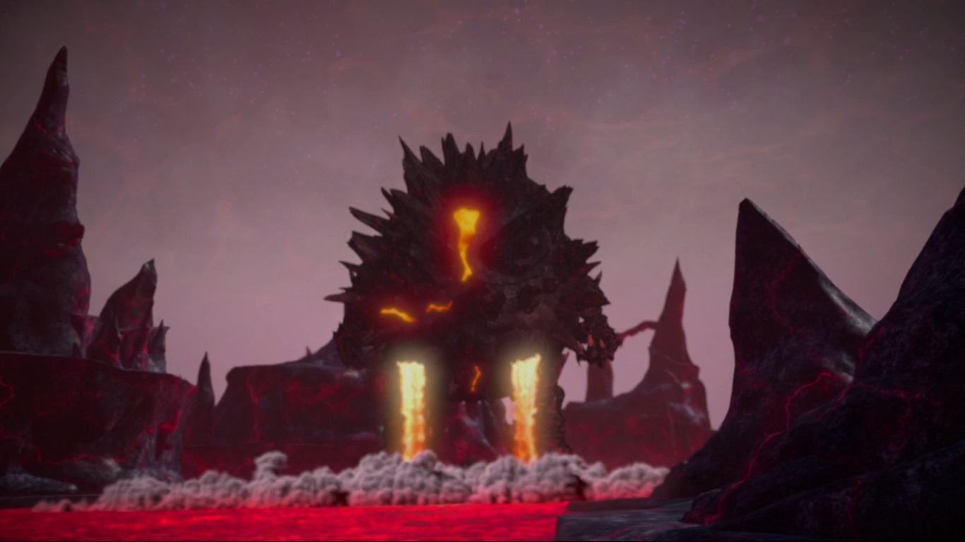 - Lorsqu’il crache du feu, le ventre de lave de Tokka rougeoie comme Gamera