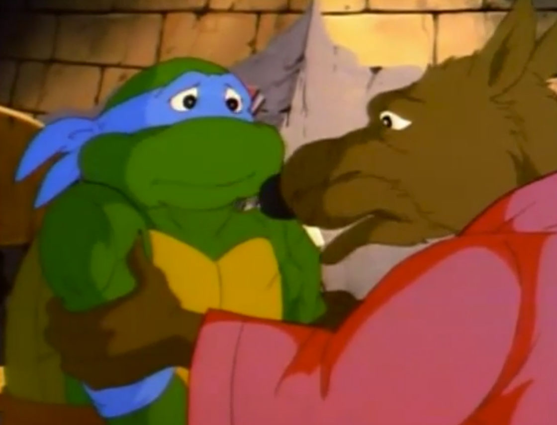 Zach essayait de détacher Splinter, mais ses liens étaient trop serrés. Le jeune garçon partait prendre l’appareil, toujours à la ceinture du rhinocéros. Cette fois, Rocksteady ne s’était aperçu de rien, il était trop occupé à arracher le frein d’un train qu’il lançait en direction de Splinter. Sautant de la locomotive, lancée à vive allure, le mutant se rendait compte qu’il n’avait plus l’anxiétron sur lui. Apercevant Zach au loin, il le prenait en chasse. Michaelangelo venait en aide à son jeune ami, bientôt rejoint par ses frères. Les tortues allaient devoir se battre, mais pour cela, l’adolescent voulait leur rendre leur courage. Réglant le dosage de l’anxiétron, il tirait sur ses amis. Le rayon leur ôtait toute peur. Bebop et Rocksteady se précipitaient sur les mutants, qui les neutralisaient très rapidement. Jetés au sol, ils voyaient bientôt un portail s’ouvrir. En sortait Shredder, bien décidé à prendre sa revanche sur ses mutins. Il saisit ses deux mutants par le col et les trainait en direction du Technodrome.